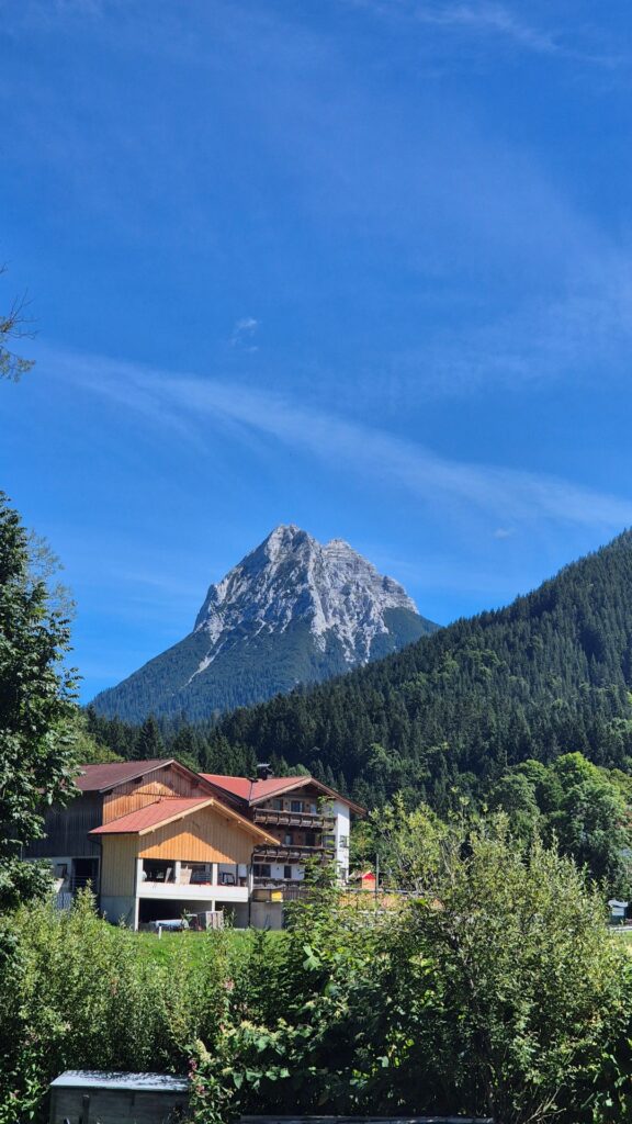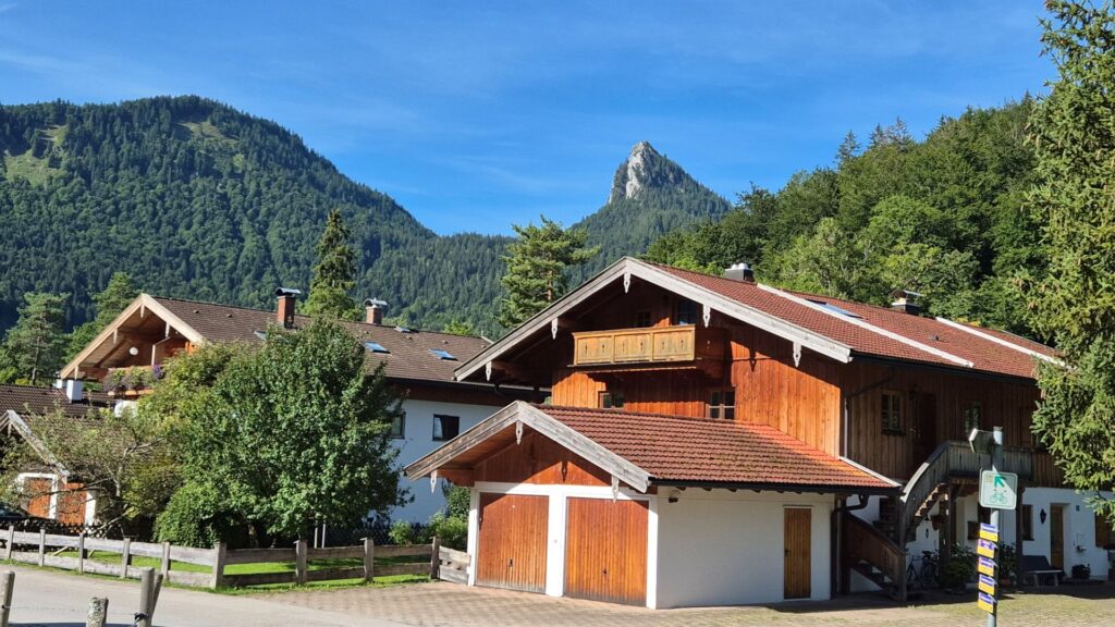 Piękne te tereny! Alpejskie na wskroś. Bawaria pełną gębą. I to taka piękna Bawaria. Jezioro otoczone wysokimi górami. Tradycyjne bawarskie czy też może raczej tyrolskie duże domy. W porównaniu do Polskich, to prawdziwe kolosy, które na oko mają ponad 300 m2. Parter murowany, jedno piętro wyżej drewniane. Czasem się zdarzy, że są dwa piętra murowane i poddasze drewniane. Domy szerokie z balkonami. Dachy dwuspadowe. Drewno ciemne. Murowane ściany białe. A na balkonach girlandy kwiatów. Pomiędzy domami piękna zielona trawa. Na wsi często są to domy „bauerów”, więc obok okazałych domów stoją niemniej okazałe stodoły, zabudowy gospodarcze, maszyny, traktory. Często też podobnie jak to widziałem w Szwajcarii pod którymś budynkiem gospodarczym jest ogromna balia, w której leje się na bieżąco woda – często ze strumienia nieopodal. Nie zdarzyło mi się, żeby ktokolwiek zwrócił mi uwagę, że nie wolno z takiego „źródełka” czerpać wody. To woda dla zwierząt, do podlewania, do użytku gospodarczego, ale to woda pitna, źródlana. Pyszna. Obejścia tych gospodarstw są uporządkowane, klasyczny przykład niemieckiego „immer Ordnung”. No i te kwiaty! Co dom, to piękniejsze kwiaty z balkonów, z okien, z obejść. Jakby był to jakiś konkurs na najpiękniejsze kwiaty. Dodajcie to tego soczystą zieleń traw, które w większości wyglądają, jakby były wykoszone i wypielęgnowane jak na polach golfowych. No i te góry w tle. No bo w miarę jak jadę, z każdym kilometrem, tych gór i lasów w tle jest coraz więcej i wyższych. Przepiękne! Pomału kończy się dolina, którą zbliżam się do przełęczy Achenpass wyznaczającej granicę Niemiec z Austrią. Z drogi zjeżdżam na szutrowy szlak wzdłuż strumyka przez las. Jest przyjemnie. Słońce przebija się przez zadrzewioną ścieżkę pieszo – rowerową. Nabieram wody ze strumyka – jest pyszna, chłodna. Po krótkim postoju na ławce ruszam pod górkę. Szlak robi się coraz to bardziej stromy, ale nie zmusza do ogromnego wysiłku – idealnie.