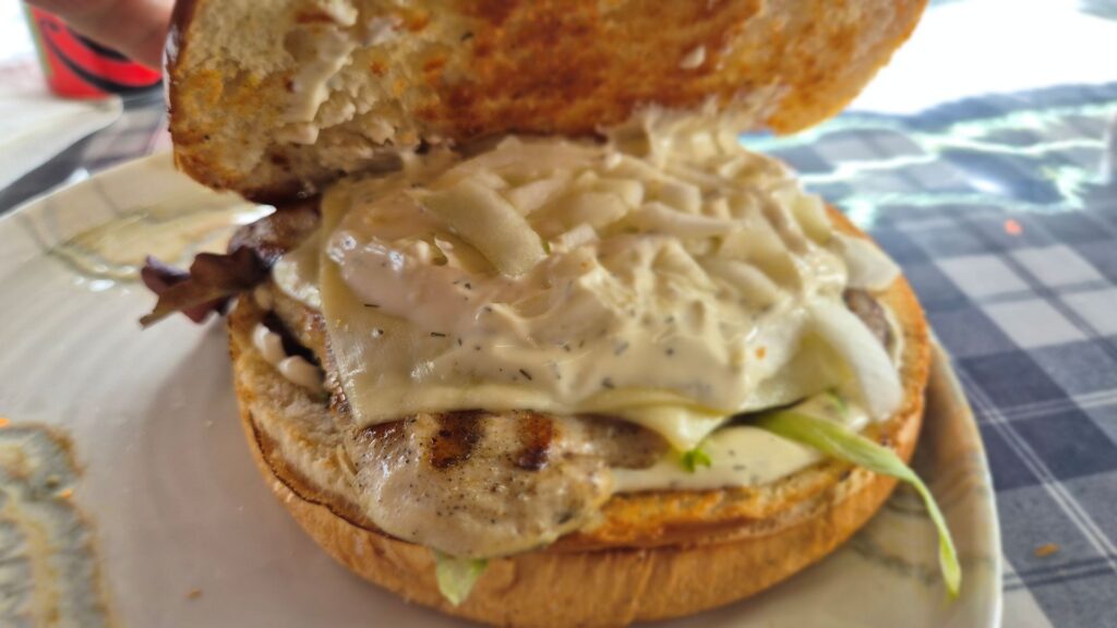 Tymczasem wjeżdżając do Innsbrucka mijałem głównie przemysłowe dzielnice, później blokowiska, a sklepu ani miejsca by coś zjeść nie było. Gdy więc sprawdziłem godzinę, a było już po 17, wiedziałem, że nie mam czasu na spokojne zwiedzanie starówki miasta. W Innsbrucku byłem w ubiegłym roku z moimi Dziewczynami, więc poznałem stare miasto dość dobrze. Zdecydowałem więc, że muszę zamiast odbijać w przeciwnym kierunku niż do Martina, jechać już w kierunku podjazdu. Niestety coś się porobiło z nawigacją, która co i rusz zmieniała trasę, więc klucząc po blokowiskach, całkiem przyjemnych zresztą, sprawdziłem w telefonie jak się kierować, obrałem azymut i pojechałem do mostu na rzece Inn. W miarę jednak jak się do niego zbliżałem ogarniał mnie coraz większy niepokój. Pojawiły się bowiem sklepy, ale nie było na mojej trasie żadnego miejsca by coś w miarę szybko zjeść. Gdy więc ścieżka skierowała mnie na most, sprawdziłem w telefonie, że po drugiej stronie ruchliwej 6-pasmowej ulicy jest jakiś bar z kebabami i burgerami. Pojechałem tam. Zamówiłem cheeseburgera z frytkami i piciem. Co prawda dostałem chicken burgera, ale nie miałem czasu ani ochoty już się wykłócać. Jedzenie bowiem dostałem dopiero o 17:57. Zjadłem szybko, popiłem, skorzystałem z toalety i ruszyłem do St. Peter gdzie mieszkał Martin.