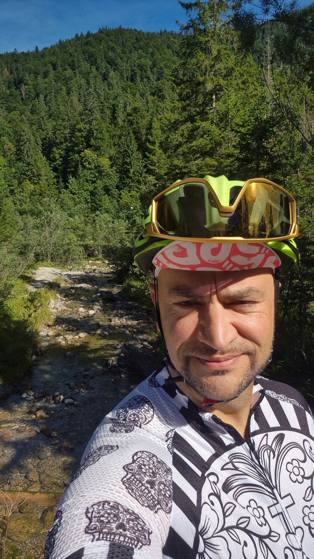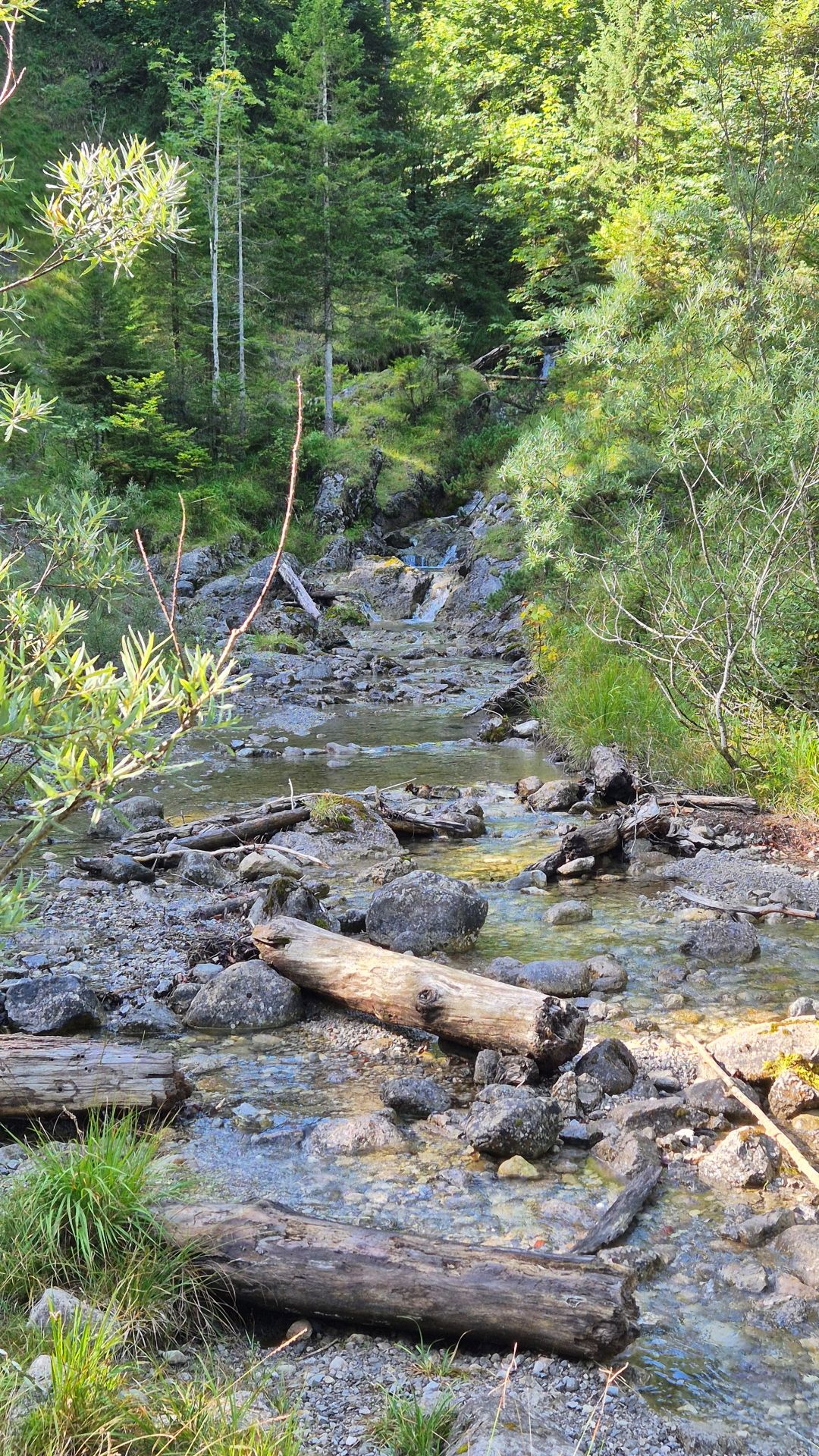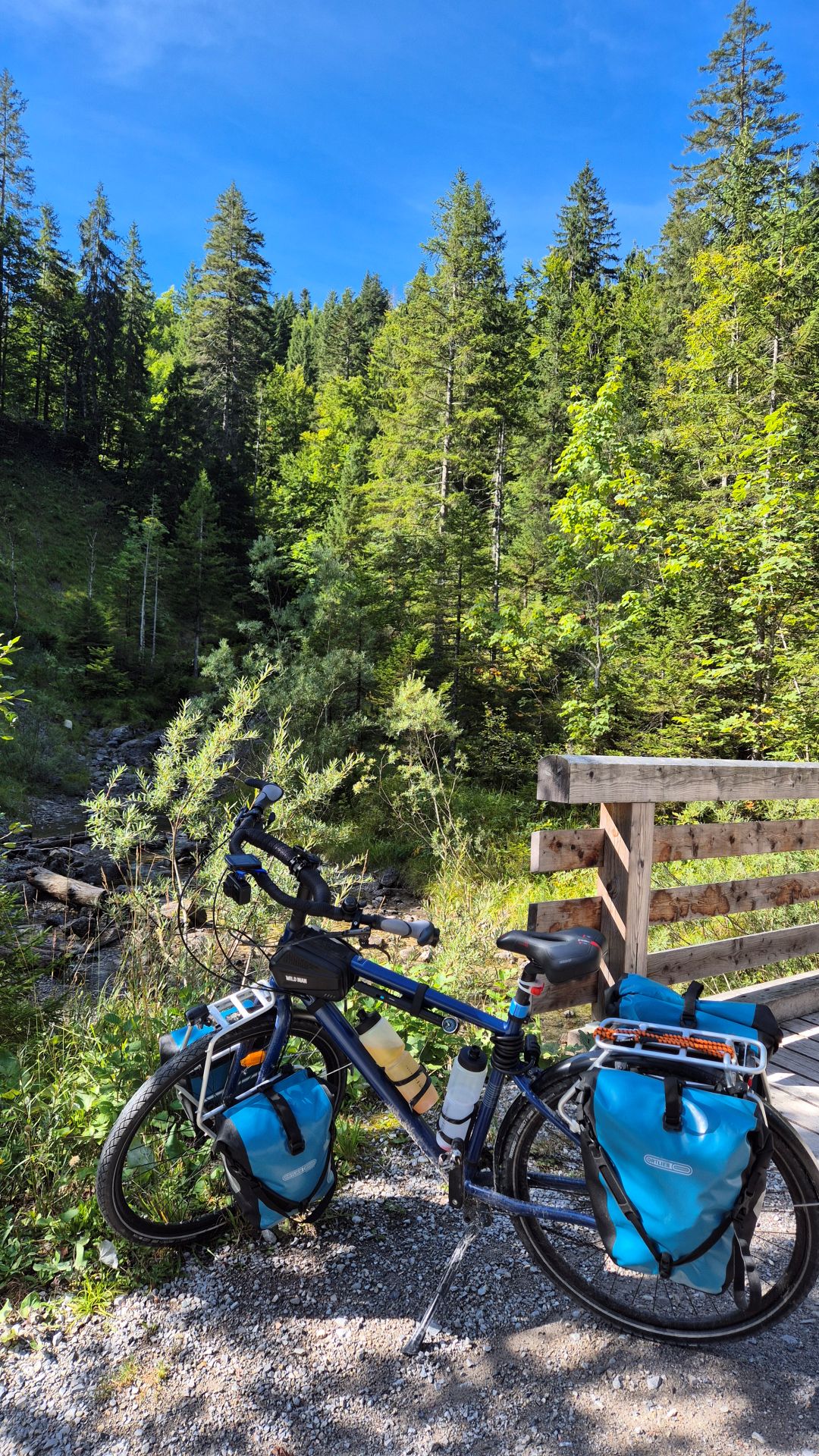 Piękne te tereny! Alpejskie na wskroś. Bawaria pełną gębą. I to taka piękna Bawaria. Jezioro otoczone wysokimi górami. Tradycyjne bawarskie czy też może raczej tyrolskie duże domy. W porównaniu do Polskich, to prawdziwe kolosy, które na oko mają ponad 300 m2. Parter murowany, jedno piętro wyżej drewniane. Czasem się zdarzy, że są dwa piętra murowane i poddasze drewniane. Domy szerokie z balkonami. Dachy dwuspadowe. Drewno ciemne. Murowane ściany białe. A na balkonach girlandy kwiatów. Pomiędzy domami piękna zielona trawa. Na wsi często są to domy „bauerów”, więc obok okazałych domów stoją niemniej okazałe stodoły, zabudowy gospodarcze, maszyny, traktory. Często też podobnie jak to widziałem w Szwajcarii pod którymś budynkiem gospodarczym jest ogromna balia, w której leje się na bieżąco woda – często ze strumienia nieopodal. Nie zdarzyło mi się, żeby ktokolwiek zwrócił mi uwagę, że nie wolno z takiego „źródełka” czerpać wody. To woda dla zwierząt, do podlewania, do użytku gospodarczego, ale to woda pitna, źródlana. Pyszna. Obejścia tych gospodarstw są uporządkowane, klasyczny przykład niemieckiego „immer Ordnung”. No i te kwiaty! Co dom, to piękniejsze kwiaty z balkonów, z okien, z obejść. Jakby był to jakiś konkurs na najpiękniejsze kwiaty. Dodajcie to tego soczystą zieleń traw, które w większości wyglądają, jakby były wykoszone i wypielęgnowane jak na polach golfowych. No i te góry w tle. No bo w miarę jak jadę, z każdym kilometrem, tych gór i lasów w tle jest coraz więcej i wyższych. Przepiękne! Pomału kończy się dolina, którą zbliżam się do przełęczy Achenpass wyznaczającej granicę Niemiec z Austrią. Z drogi zjeżdżam na szutrowy szlak wzdłuż strumyka przez las. Jest przyjemnie. Słońce przebija się przez zadrzewioną ścieżkę pieszo – rowerową. Nabieram wody ze strumyka – jest pyszna, chłodna. Po krótkim postoju na ławce ruszam pod górkę. Szlak robi się coraz to bardziej stromy, ale nie zmusza do ogromnego wysiłku – idealnie.