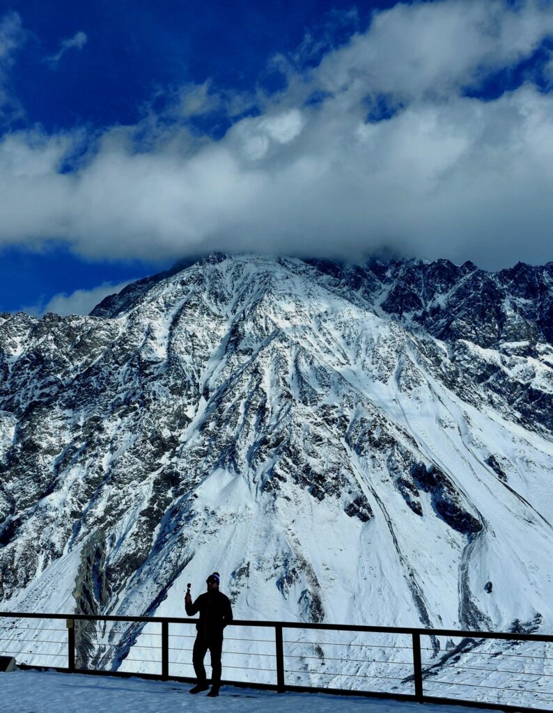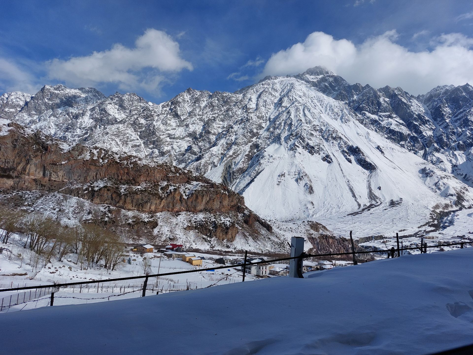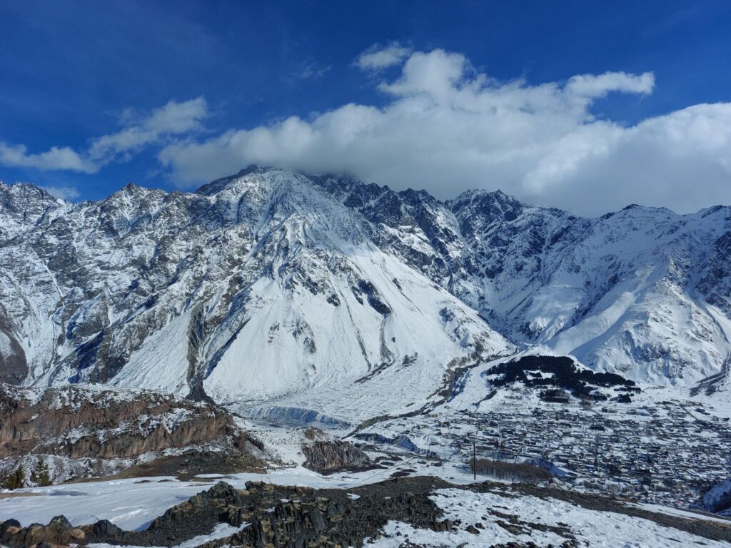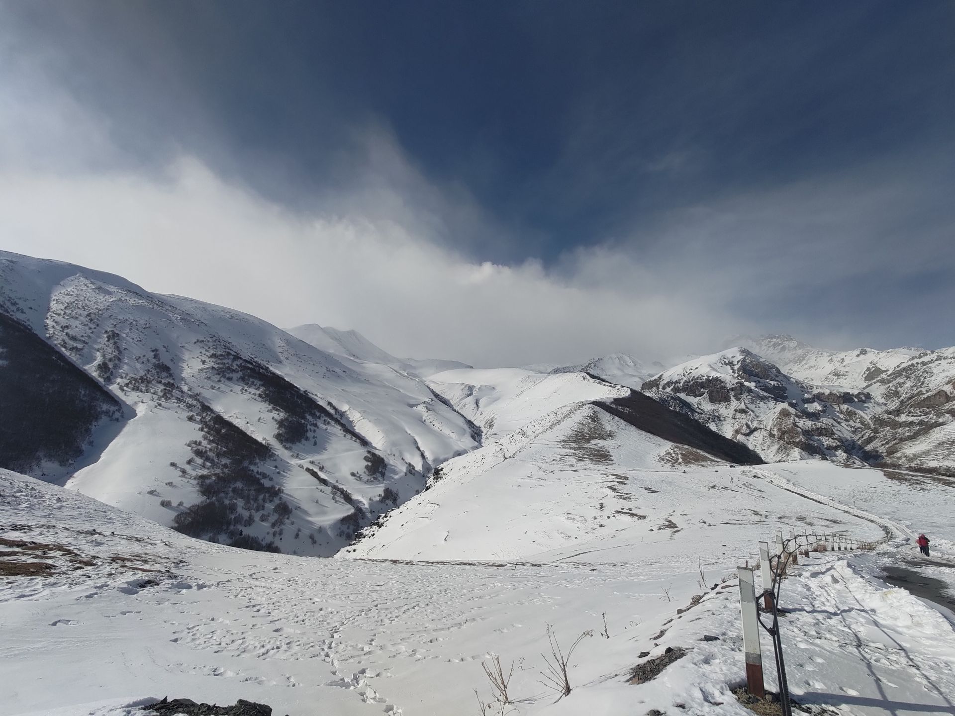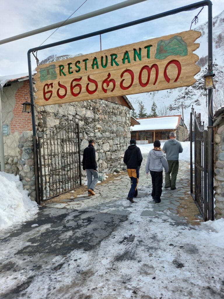 Zmiana czasu spowodowała, że wylądowaliśmy w Tbilisi o 5:35 mimo że wylecieliśmy z Warszawy o 22:55 a lot trwał 3 godziny. Brzmi jak zadanie z matematyki z klasy 7. Żeby jeszcze Wam utrudnić, to ruszyliśmy w drogę 3 lutego, w nocy z 3 na 4 wracaliśmy do Rzeszowa autobusem i 4 wylecieliśmy z rzeszowskiej Jasionki do Warszawy. Dolecieliśmy 5 lutego. Shio dowiózł nas do Gudauri koło 9 rano. Gdy tylko daliśmy znać naszym Przyjaciołom, że oto dojechaliśmy, dostaliśmy odpowiedź, że mamy godzinę, żeby się zabrać z nimi na wycieczkę, bo dzisiaj pogoda niekorzystna do jeżdżenia na nartach – sypie intensywnie śnieg i nic nie widać na stokach.