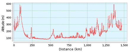A tutaj wykres wysokości do pokonania na całej trasie.