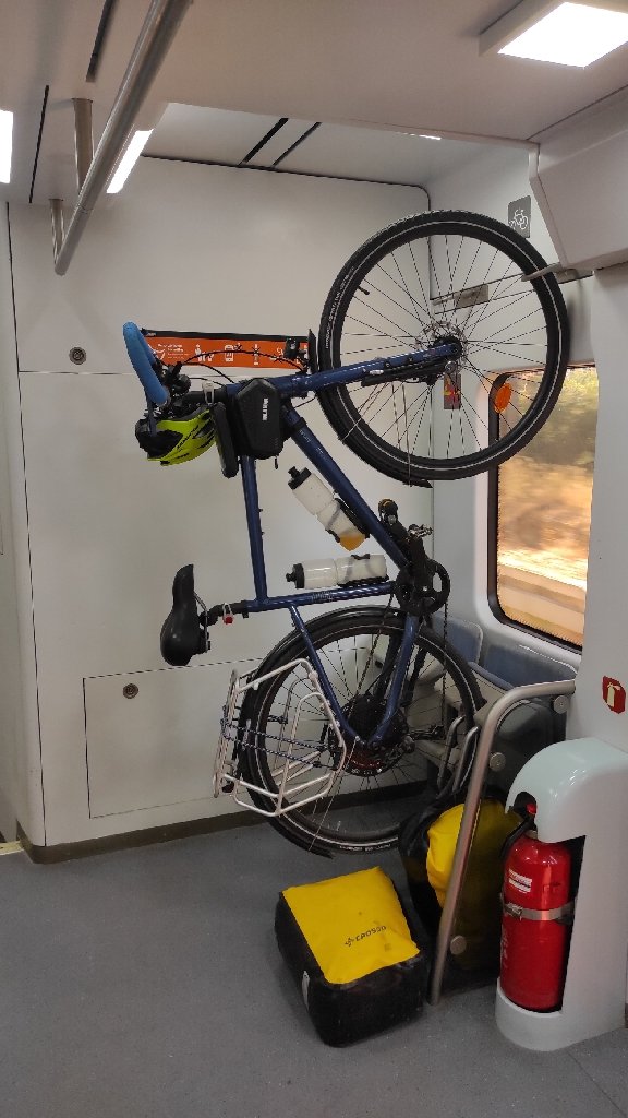 Zostałem na dworcu czekając na mój pociąg. Kupiłem bilet online, bo tak jest taniej we Francji. Droga do Portbou nie była długa, ale za to widoki za oknem piękne. Po wysiadce na dworcu była kontrola policji hiszpańskiej, gdzie sprawdzali dowody osobiste / paszporty, ale nawet nie pytali o szczepienia czy cokolwiek z koronawirusem. Oczywiście w pociągu, maska na twarzy musiała być, no i na dworcu też. Poszedłem do okienka kupić bilet. Bez problemu. Informacja jaką dostałem w Banyuls była w 100% poprawna. Kupiłem więc bilet i czekałem na peronie na mój pociąg. Jakiś stał, ale nie wiadomo było, czy to ten odpowiedni. Żadnych oznaczeń na nim, żadnej obsługi, więc cierpliwie czekałem. Ja i kilka innych osób które też nie wiedziały co to za pociąg. Gdy było już 10 min do odjazdu, zaryzykowałem i wsiadłem. Dwie minuty później w środku na wyświetlaczu pojawiła się informacja, która potwierdziła mi, że siedzę we właściwym pociągu. Co ciekawe, w Hiszpanii nie ma biletów na rower. A przynajmniej w tych liniach regionalnych. Po półtorej godzinie wysiadłem na dworcu Barcelona – Sants.