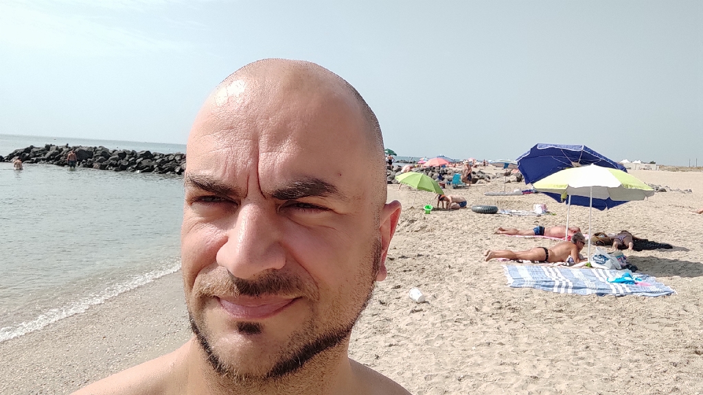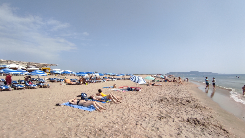Spokojny rytm życia który widziałem, gdy mijałem mieszkańców leniwie popijających kawę prawie mi się udzielił, bo palące słońce powodowało, że najchętniej schowałbym się w cieniu i zdrzemnął chwilkę. Stwierdziłem jednak, że lepiej będzie, jeśli dojadę do jakiejś fajnej plaży i tam sobie odpocznę, popływam i strzelę kawkę. Tak właśnie zrobiłem i mniej więcej w połowie długości mierzei zatrzymałem się na popas. Zjadłem drugie śniadanie, schłodziłem w morzu, wypiłem kawę i odpocząłem.