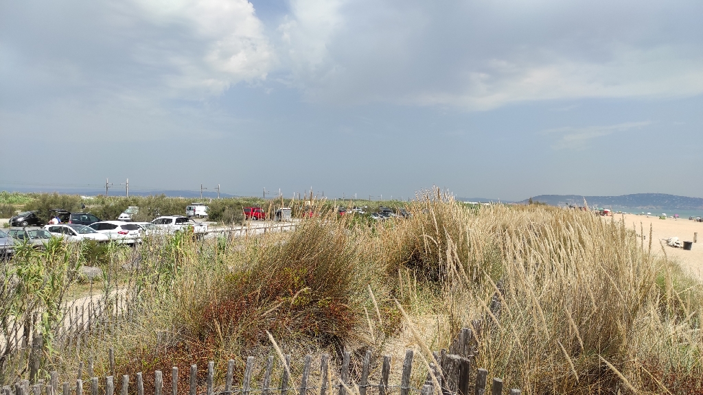 Mogłem ruszyć dalej. Po drodze mijałem wiele campingów. Widać było, że nie ma żartów – całe campingi pełne turystów, domki pełne, każdy skrawek ziemi zajęty przez przyczepy, kampery i namioty. Byłem pełen obaw, co się będzie działo wieczorem, gdy będę chciał gdzieś się rozbić z namiotem… Wysłane wiadomości do wszystkich z warmshowers, których mogłem znaleźć w Narbonne i okolicach pozostawały bez odpowiedzi. Wysłałem więc trzy pytania rezerwacyjne do campingów w okolicach Narbonne. Nie było odpowiedzi. Na szczęście widziałem w aplikacji Camping.info że jest ich sporo, nadzieję więc miałem, że coś się znajdzie na miejscu. Wiedziałem, że w najgorszym wypadku będę spał na dziko gdzieś na plaży. Żeby zdążyć obskoczyć kilka campingów, musiałem się na nich pojawić przed zamknięciem recepcji, czyli najlepiej, żebym był u celu nie później niż koło 17:30-18:00.