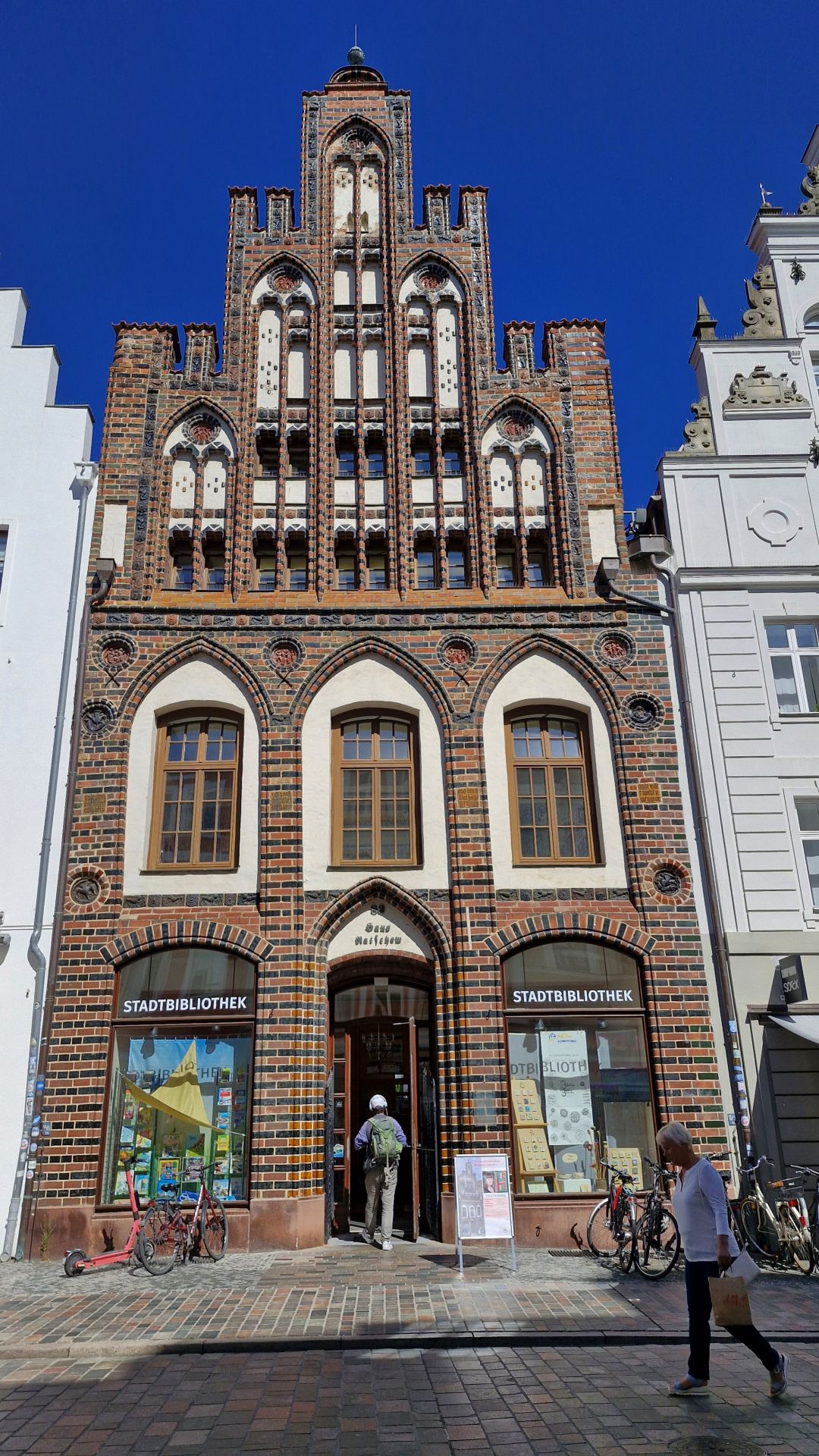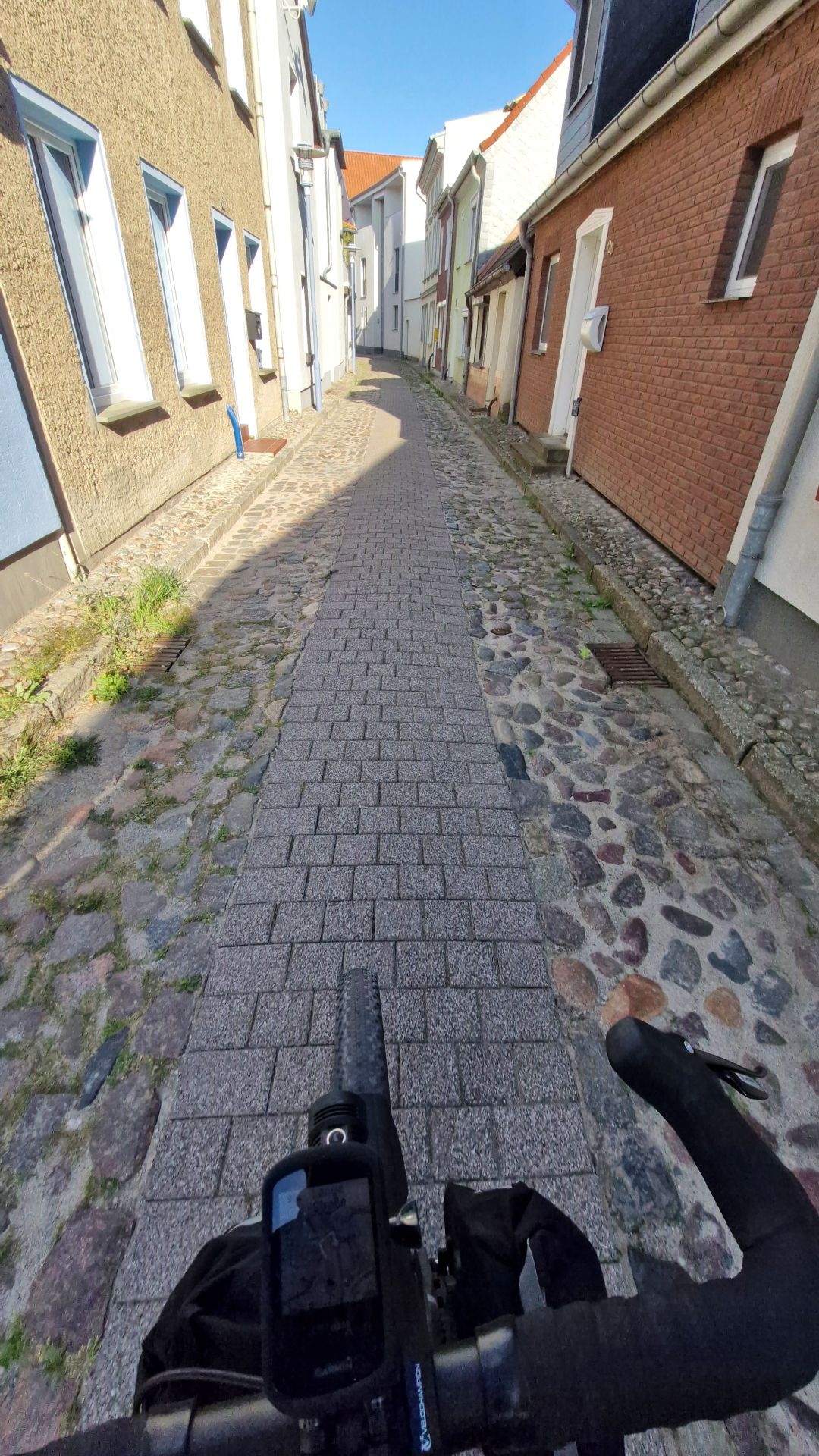 Rostock, to jedno z większych miast w tej części Niemiec. Bliżej portu i wody coraz bardziej przypominający wyglądem nadmorskie kurorty w Polsce typu Świnoujście, Kołobrzeg. Sporo ludzi, a szlak rowerowy poprowadzony w dużej mierze chodnikami gdzie pieszych było sporo. Musieliśmy więc lawirować między nimi.