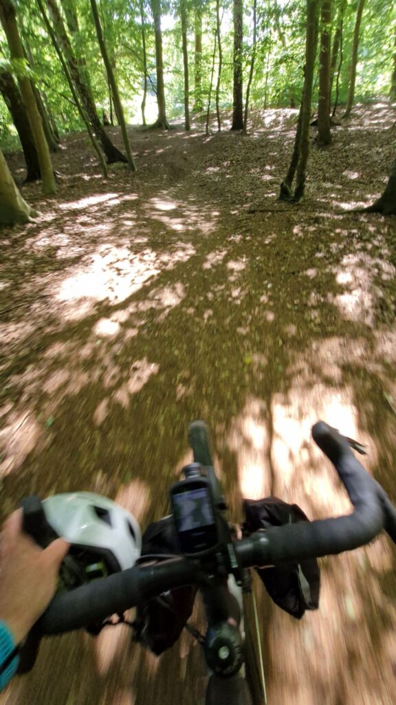 Bilety na pociąg kupiłem przez aplikację DB (Deutsche Bahn). Jest możliwość zapłacenia kartą Revolut. Bilety na nas dwóch z rowerami wyszły razem 25,30 EUR, czyli jakieś 55zł za osobę. Przyjechał taki szynobus, jakich u nas na Podkarpaciu jest sporo. Niestety ludzi sporo, więc musiałem stać z rowerem a na każdym przystanku się przestawiać, bo drzwi otwierały się a to z jednej strony, a to z drugiej. Na szczęście nikt nie marudził, że zawadzam. Ale też nie miał ku temu powodów, bo miejsca dedykowane dla rowerów były zajęte przez rodziny z dzieciakami, które robiły sporo harmindru.