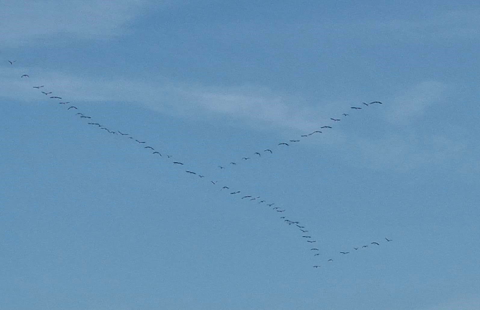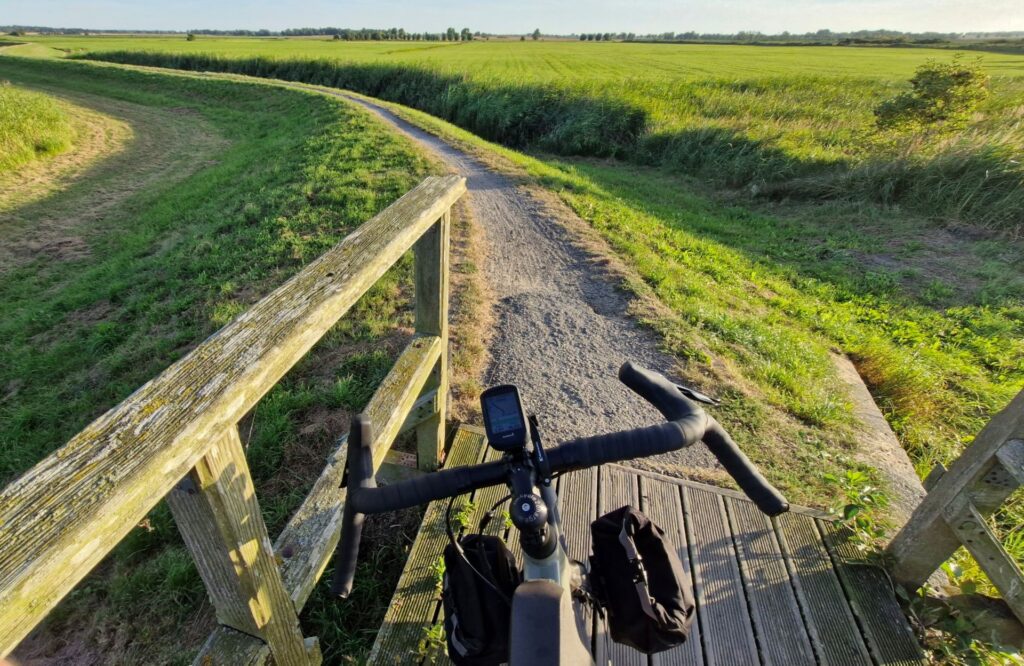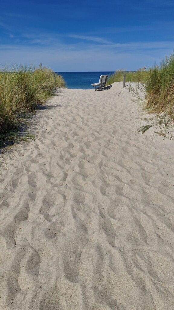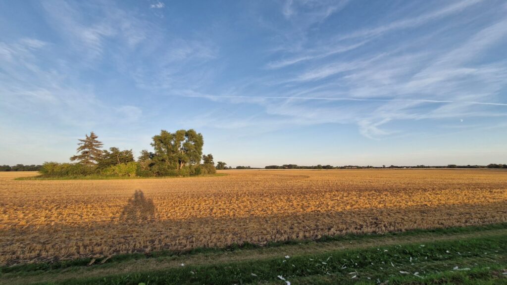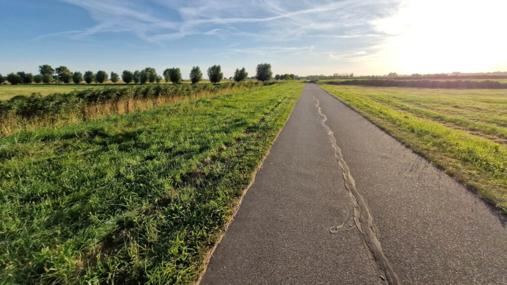 Słońce pomału zaczęło zachodzić, a my jechaliśmy przez płaskie, otwarte przestrzenie wygodnymi ścieżkami rowerowymi po lewej mając zatokę Barther Bodden a po prawej łąki, pola uprawne. Wiatr już nam nie przeszkadzał, mimo że nie zelżał, gnaliśmy do celu. Minęliśmy rezerwat ptaków i Opcio wypatrzył klucze najprawdopodobniej kaczek, czy gęsi. Dojeżdżaliśmy do Prohn.