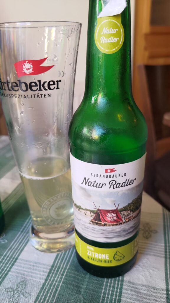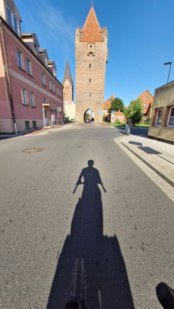 Koło 16, gdy dojechaliśmy do miejscowości Barth, postanowiliśmy zatrzymać się na coś ciepłego do jedzenia. Przejechaliśmy przez okazałą bramę, pooglądaliśmy małe domki stojące w szeregu w starej części miasta otoczonej murami tworzącymi owalny kształt aż zatrzymaliśmy się w restauracji Il Fornaio. Zamówiliśmy pizze. Niestety ani Pan właściciel, ani Pani właścicielka nie okazali nam chociaż życzliwości. No cóż, dwóch spoconych gości w obcisłych ciuchach z lycry nie wygląda im na takich, co mogą zostawić więcej pieniędzy niż rodzina z dziećmi. Pizza była średnia, radler pyszny, a obsługa słaba, więc o napiwku mogli zapomnieć (a lubimy nagradzać napiwkami). Pojechaliśmy więc dalej.