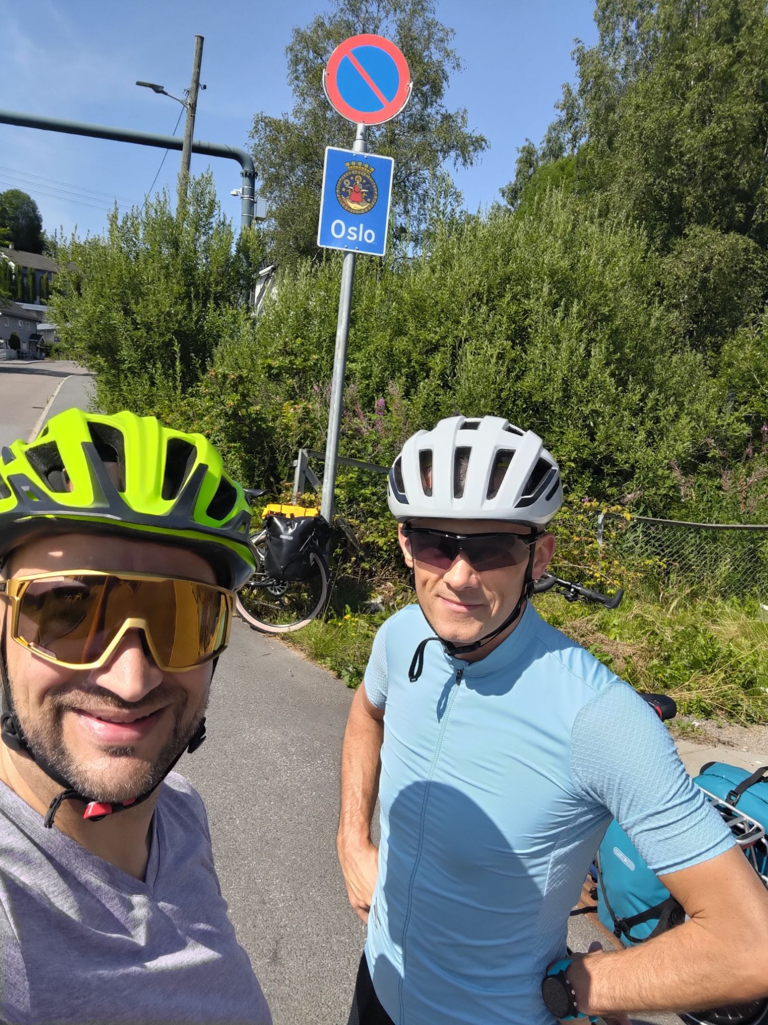 Droga do centrum Oslø, bo lotnisko oddalone od niego, prowadziła nas ścieżkami rowerowymi wzdłuż trasy rowerowej nr 7. Ładnie w tej Norwegii! Mijaliśmy bardziej tradycyjne w wyglądzie domki drewniane, w różnych kolorach, najczęściej szare, bordo, ale niemal zawsze z białymi okiennicami, niezbyt duże, najczęściej na oko 60-80 m2. Ładnie przystrzyżone trawniki, czasem jakiś płotek, rzadziej wyższe ogrodzenie. Jeśli były to jednak inne budynki, jak szeregówki, bloki, albo jakieś firmy czy budynki użyteczności publicznej typu szkoła, to już oko cieszy nowoczesna architektura. Co ciekawe, z dużymi oknami. Ja spodziewałem się raczej mniejszych okien, ze względu na zimno. Często elewacje są wykonane z drewna typu siding, jak na domkach jednorodzinnych, ale też betonowe, z akcentami drewnianymi. Często na podwórku stoi maszt z flagą. Długą, spiczasto zakończoną w kolorach flagi Norwegii, ale zamiast krzyża skandynawskiego na niej jest tylko jeden poziomy pas. Nie wiem, czy to regionalne, czy tak ma być, ale dumą z tożsamości narodowej jest.