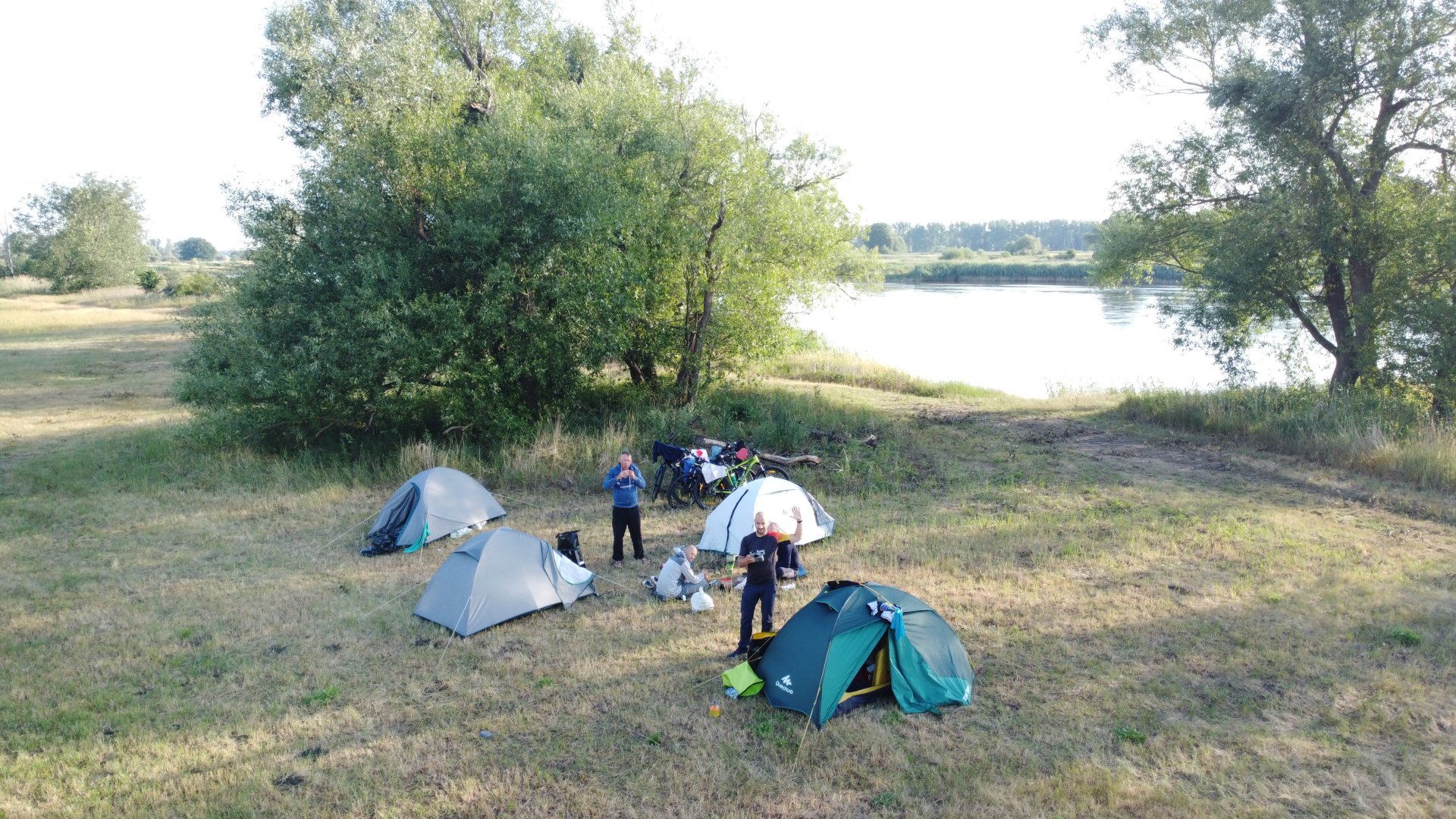 Wypuściłem dronka – Bronka na zwiad i parę ujęć, a chłopaki poszli się wykąpać w rzece. Rzeka cieplutka – zachęcała do kąpieli. Skorzystałem więc i ja, bo po całym dniu niemal całe ciało jest lepkie od potu albo jakby posypane talkiem – to sól z potu. Gdy usiedliśmy zjeść i napić się piwa było już ciemno, więc nie siedzieliśmy zbyt długo. Ja byłem już tak padnięty, że mimo prób, nie dałem rady niczego napisać. Trudno – będę próbował zrobić to jutro…