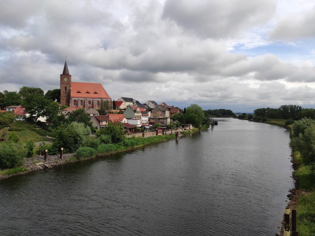 Trasa wiła się wzdłuż rzeki Nysy a monotonię widoków przełamywały zmiany w zwierzętach jakie się nad rzeką pasły. Krowy, barany, krowy, barany… Dojechaliśmy do Frankfurtu nad Odrą gdzie jest most do polskiej strony ze Słubicami. Zjechaliśmy tam na obiad. Tomek wybrał dla nas miejsce, które trafnie ktoś nazwał „Obiady domowe Do Syta”. Zamówiliśmy sobie pełne zestawy obiadowe i najedliśmy się naprawdę do syta! Jeszcze tylko zakupy na kolację i śniadanie, bo podjęliśmy decyzję, by dzisiaj znów nocować na dziko. Wybór padł na brzeg Odry za Kostrzynem n/Odrą. Jeszcze tylko zostało nam tam dojechać.