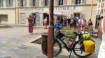W zależności od sytuacji, czasem zamykam swój rower zapięciem, gdy chcę skoczyć do toalety, czasem widzę, że nie ma takiej potrzeby. Pytam barmankę, czy może rzucić okiem na rower, pokazując dwoma palcami na oczy i na „Velo”. Uśmiech, „oui” i już! Nie muszę ściągać GoPro z kierownicy, zabierać, portfela, telefonu i tracić na to czasu. Jednak gdy przystaję w miejscu gdzie jest więcej ludzi, czuję, że muszę być bardziej ostrożny. W Signed usiadłem właśnie przy takim stoliku gdzie spokojnie płynie czas.