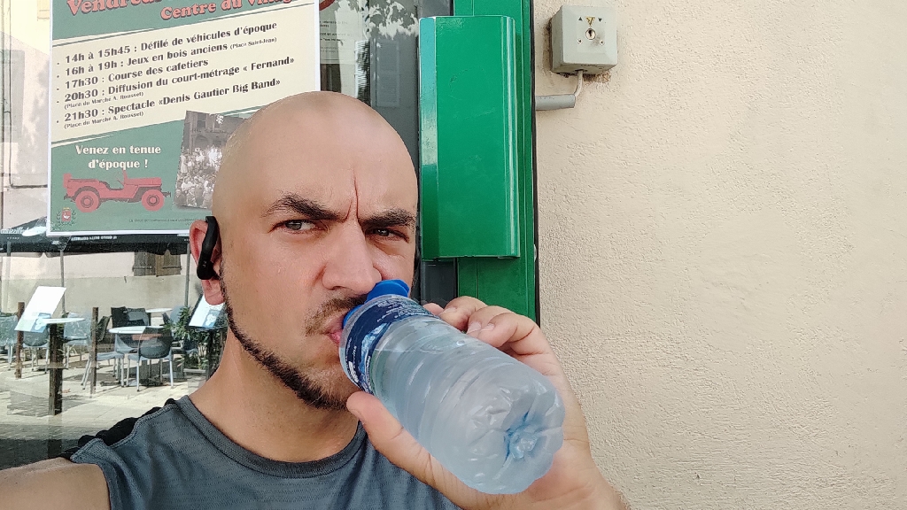 Trasę zaplanowałem na dzisiaj najbardziej optymalną, jak się dało. Omijałem Toulon i tym samym wchodziłem nieco wgłąb lądu. Chodzi mi o to, że trzeba się szanować w takich upałach i nie zmuszać niepotrzebnie do zbyt dużych podjazdów. Na trasie miałem takie wzniesienie, którego nie dawało się ominąć. Mogłem jedynie wybrać wariant ostrego podjazdu na 480 m z poziomu morza albo na 460 bardziej stopniowo, nie tak ostro. Wybrałem oczywiście ten drugi wariant, ale wiązało się on z odbiciem od morza. Wiedziałem więc, że dzisiaj koło południa nie zrobię sobie przerwy na schłodzenie się w morzu.