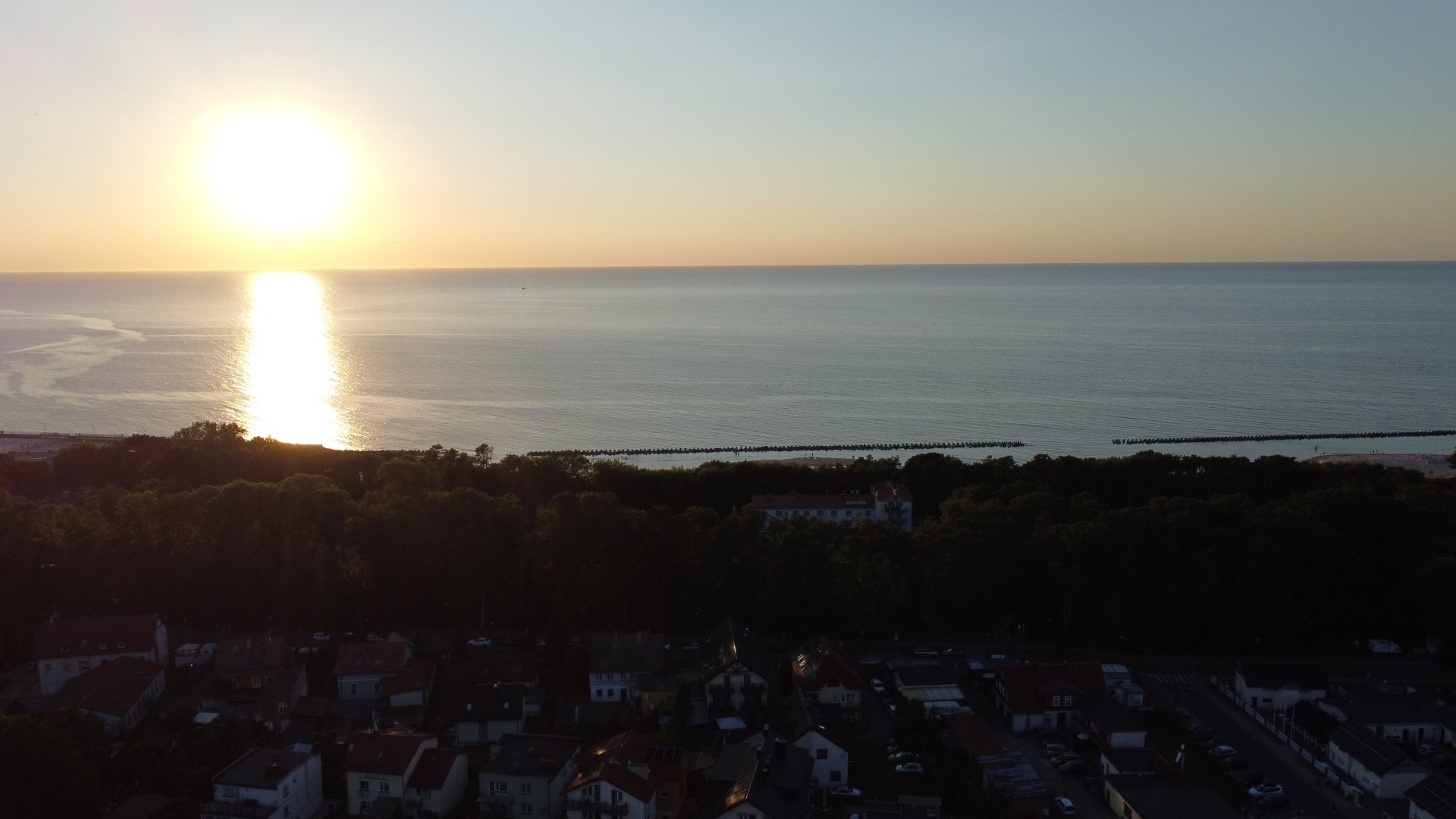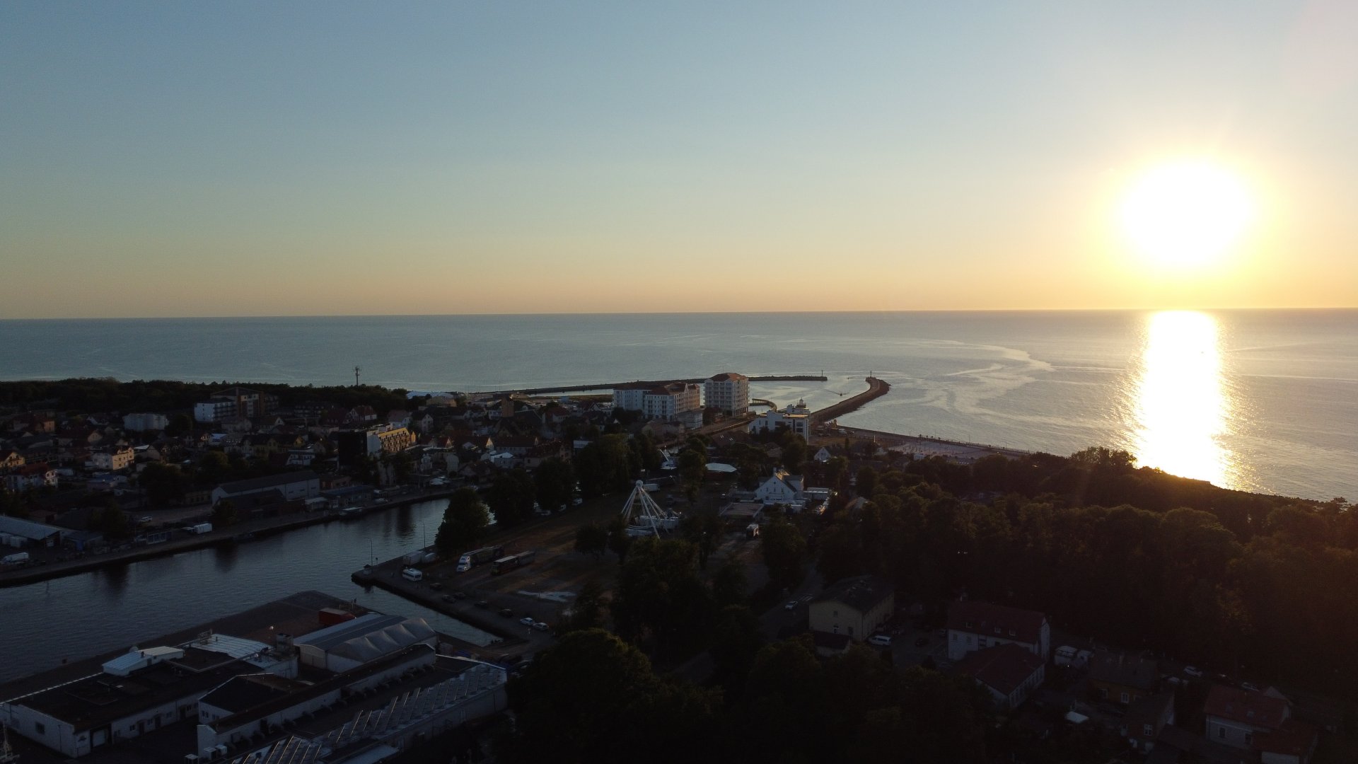 Wróciłem do kempingu. Usiadłem na ławce z łuszczącą się farbą i pisałem relację. O zachodzie słońca wypuściłem jeszcze Bronka, choć najpierw musiałem zapytać się o zgodę wieżę kontrolną, bo tu strefa z ograniczeniami. Ale udało się Bronkowi trochę polatać. Rybitwy i jeżyki próbowały go atakować nawet na wysokości 50m. Na szczęście nic mu nie zrobiły. Generalnie ciężko jest znaleźć miejsce przy wybrzeżu, gdzie można wypuścić drona. Niemal wszędzie strefy ograniczone lub zakazane. Radary, jednostki wojskowe, kapitanaty przyportowe, albo całkowity zakaz latania, jak w Ustce w centrum.