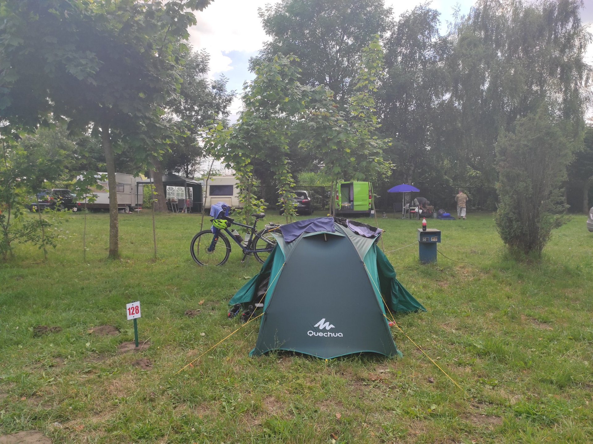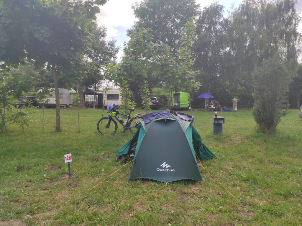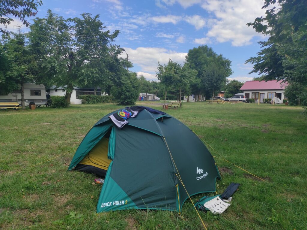 Tymczasem na kempingu głośna muzyka. To dzieci w ośrodku obok mają w niedzielę dyskotekę. Ciekaw byłem, kiedy skończą zabawę? O 21:30. I już myślałem o położeniu się w namiocie, gdy z oddali na cały regulator zaczął się koncert. Strasznie głośny. Gdy muzyka ucichła koło 23, włączyli się sąsiedzi blisko mojego namiotu. I dawaj z głośnika bluetooth puszczać jakieś badziewie. Byłem już tak padnięty, że zasnąłem. Obudziłem się w nocy słysząc deszcz, a właściwie ulewę. Zasnąłem. Miałem nadzieję, że rano już słońce namiot wysuszy…