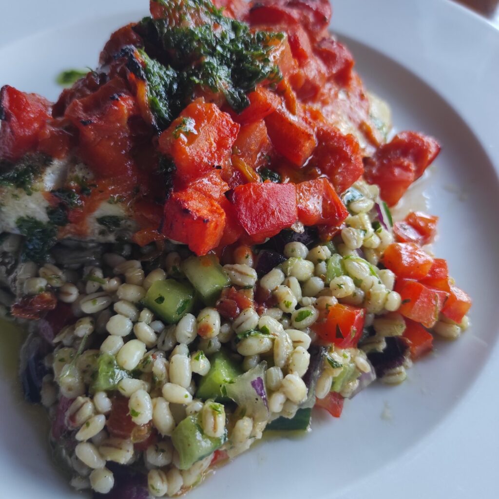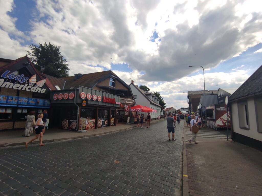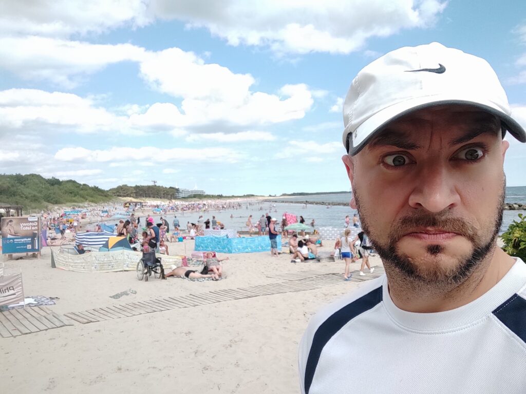 Poszedłem na plażę. Plaża spoko – piaszczysta. Ale woda w morzu zimna. Więc szybkie krótkie kąpanko i opalanko. Później poszedłem na obiad. Tutejsza oferta gastronomiczna nie przekonywała mnie dość długo, aż znalazłem restaurację, która wyraźnie się chwali laurem jakości i innymi nagrodami… Wszedłem, zobaczyłem menu i zwątpiłem widząc pizzę, burgery, makarony, schabowe, smażone ryby. Uwagę moją przykuł jednak „dorsz na pęczaku z pomidorami, pesto itd”. Naprawdę był smaczny, ale porcja mała jak na obiad dla mnie i rachunek… 50 zł ten dorsz z małym radlerkiem „Hardmade”. Dlatego później jeszcze zjadłem burgera, który był o dziwo całkiem niezły.