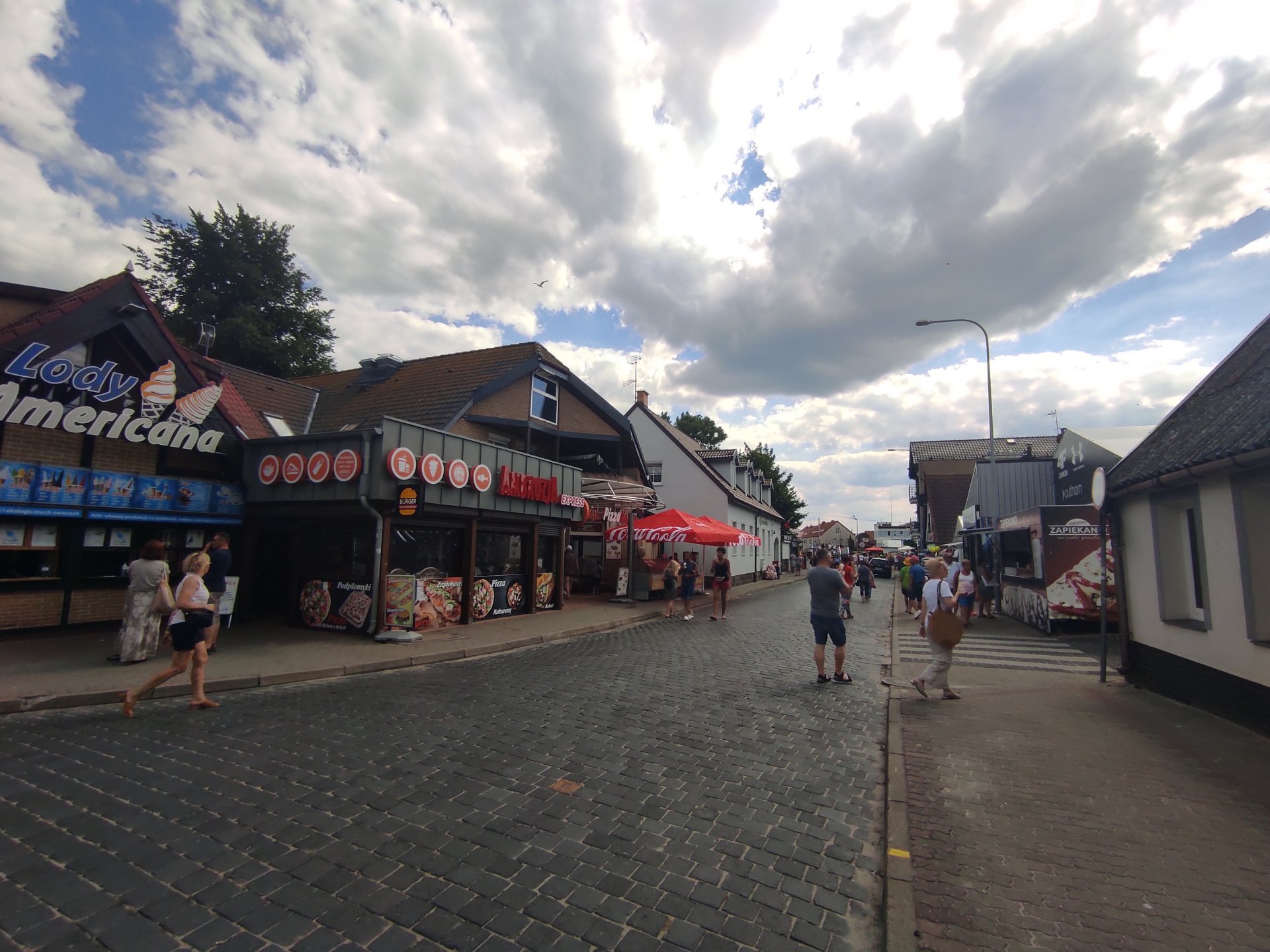Wiedziałem, że nie będę miał problemu ze znalezieniem jedzenia gdy tylko najdzie mnie na to ochota. Kołobrzeg, Sianożęty, Ustronie Morskie, Gąski, Sarbinowo, Chłopy, Mielno, Łazy, to naprawdę z perspektywy przejeżdżającego rowerzysty wszystko jedno i to samo. Na jedno kopyto. Jakby tworzone według tego samego wzorca. Zmieniają się nazwy, a oferta jest taka sama. Nie było tu ani jednego miejsca wyróżniającego się jakimś ciekawym wystrojem, czy posiadającego coś oryginalnego do jedzenia. W kółko to samo. Gofry, lody, obiady domowe, kebab, pizzeria, smażalnie ryb, ryby wędzone, zapiekanki XXL i stoiska z chińskim badziewiem na plażę lub ewentualnie jakieś souveniry z magnesami na czele lub bursztynowe posrebrzane bransoletki i naszyjniki. Często w jednej restauracji w ofercie znajdziecie rosół za 16-18 zł, pierogi ruskie 6 sztuk za 24-28 zł, zapiekanka (to jest hit!) za 16-26 zł, burgery za 40 zł, kebaby za 28-36 zł, pizza za 20-50 zł i schabowy za 42 zł. W jednej knajpie mają wszystko! Piwo za 16 zł to norma. Radlerek jaki ja pijam w lecie, mały 0,33l za 12 zł. Kawa od 10 zł w górę. Gałka loda minimum 6 zł. Gofry od 10-20 zł w zależności od dodatków.