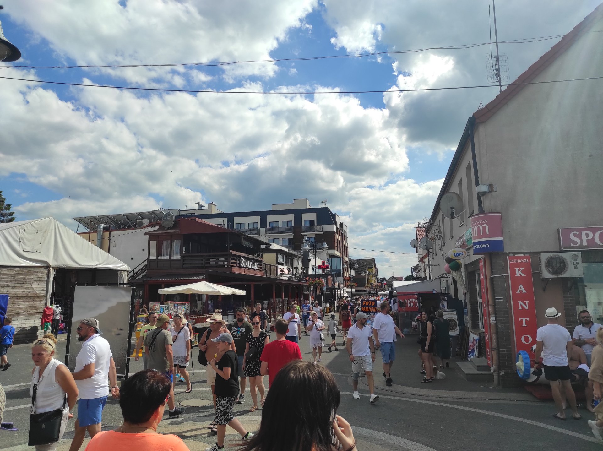 I idą te Sebixy z Karynami wcinający zapieksę. Bombelek Brajanek już wcina gofera z dżemerem a babcia obok drze się do Karyny, że Brajanek jednym goferkiem się nie naje. Że trzeba mu pierogów kupić. Tłoczy się tłum w kolejce po kebaba, a ci co nie stoją, to w tym natłoku bodźców wzrokowo-słuchowych idą wolno gapiąc się na prawo i lewo kompletnie nie zwracając uwagi na to, że lezą ulicą. W tym wszystkim dudni kakafonia dobiegającej muzyki z różnych stron, bo każda knajpa puszcza inną muzykę i to naprawdę głośno. Do tego młode chłopaczki jak idą w ilości większej niż 3 sztuki, musowo mają ze sobą głośnik i na cały regulator słuchają swojej muzy, próbując przebić to co dobiega do nich z innych kierunków. Tak właśnie wypoczywa Polska. A wygląda o wiele gorzej niż jeszcze kilkanaście czy kilkadziesiąt lat temu.
