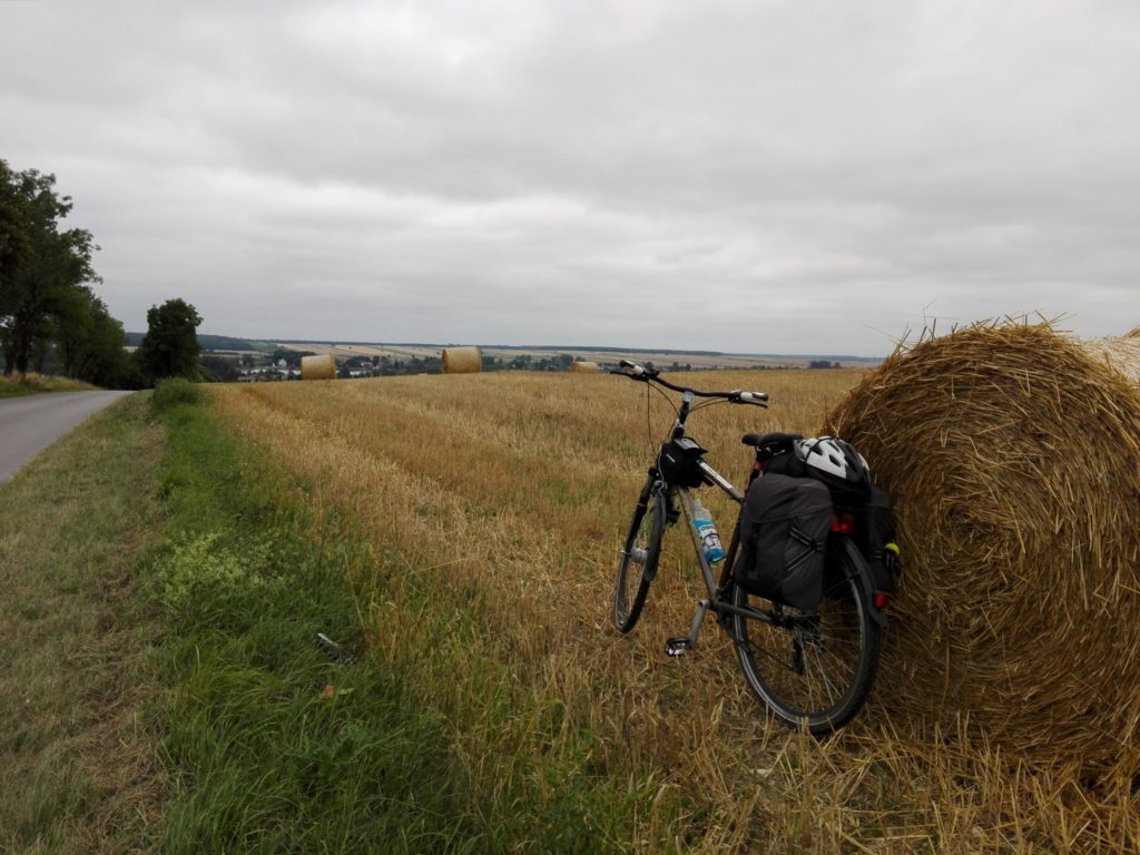 Gdy powitałem Krasnystaw liczyłem na asfalt. Budowniczy GV miał inne zdanie i położył utwardzony żwir… dla porównania- po wczorajszym dniu rower i sakwy jak nowe. Po dzisiejszym wszystko utytłane i zapylone.