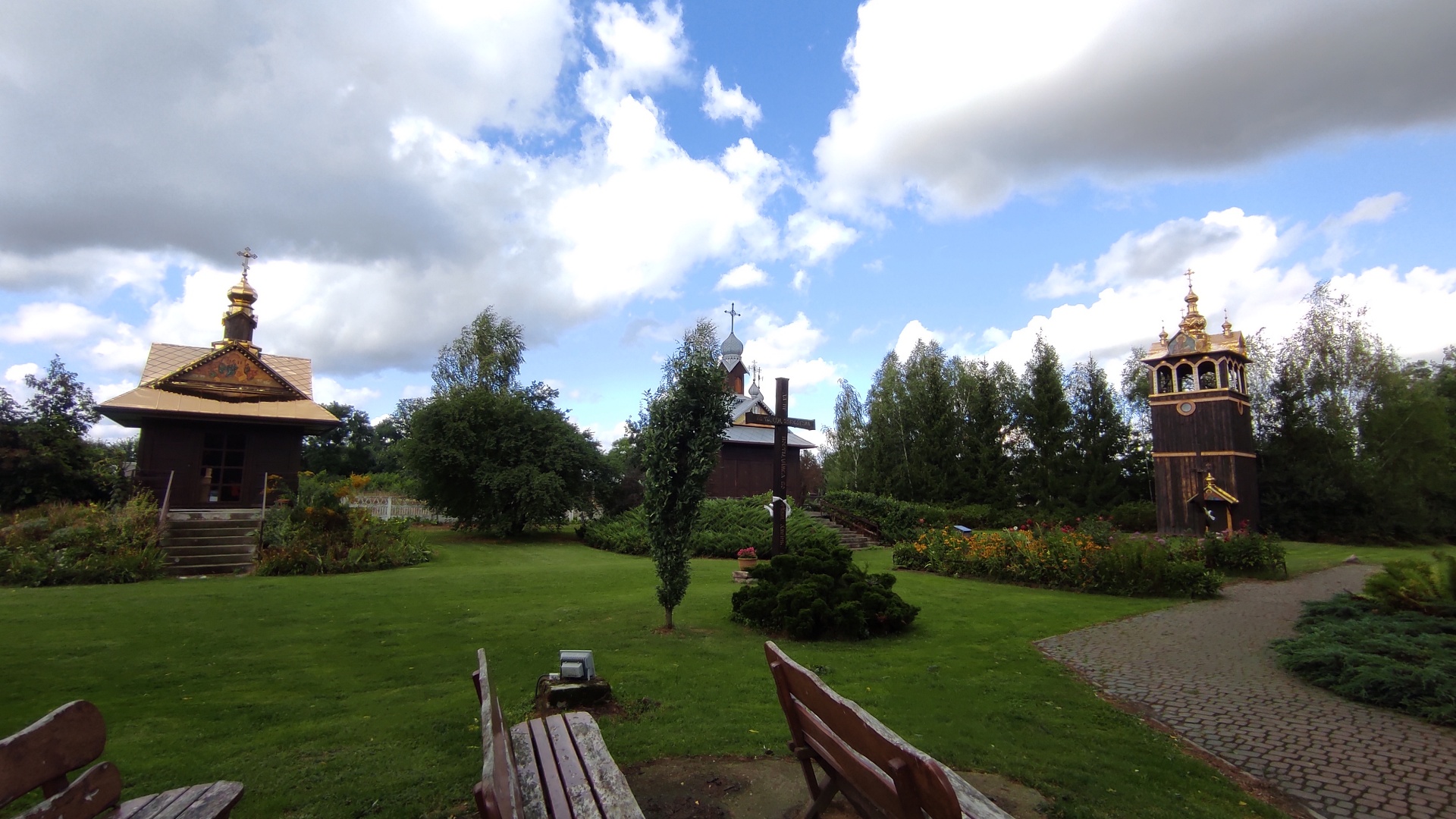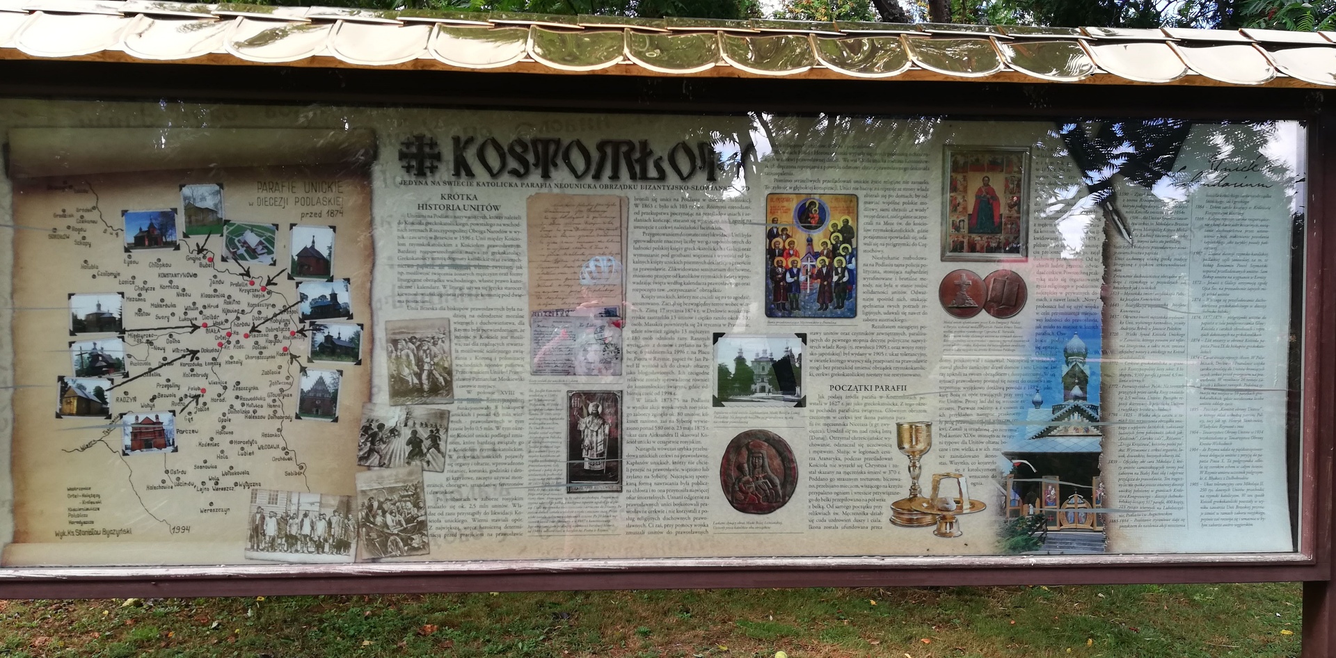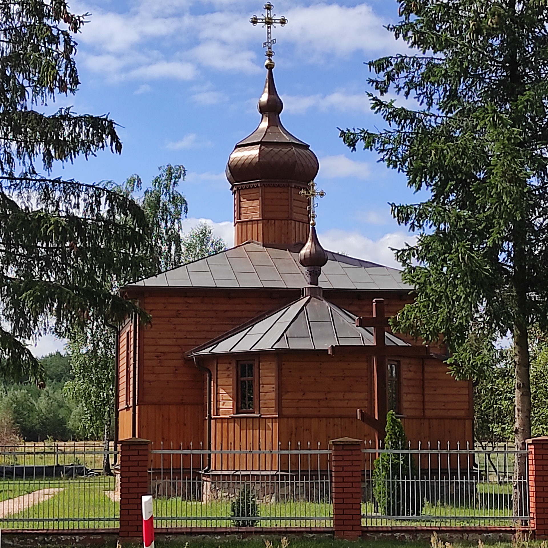 Jakoś udało nam się dostać do Terespola. Dalej szlak wiedzie blisko Bugu i w Żukach jest tuż obok. Za Żukami warto się zatrzymać w Kostomłotach. Jest tam kościół unicki o którym pisałem Wam w relacji mojej samotnej podróży na Hel 4 lata temu. Ponieważ jednak Opcio był tutaj po raz pierwszy, zatrzymaliśmy się. Niestety nikogo nie było, by mógł nam pokazać wnętrze kościoła lub opowiedzieć nam nieco o historii tego miejsca. Szkoda.
