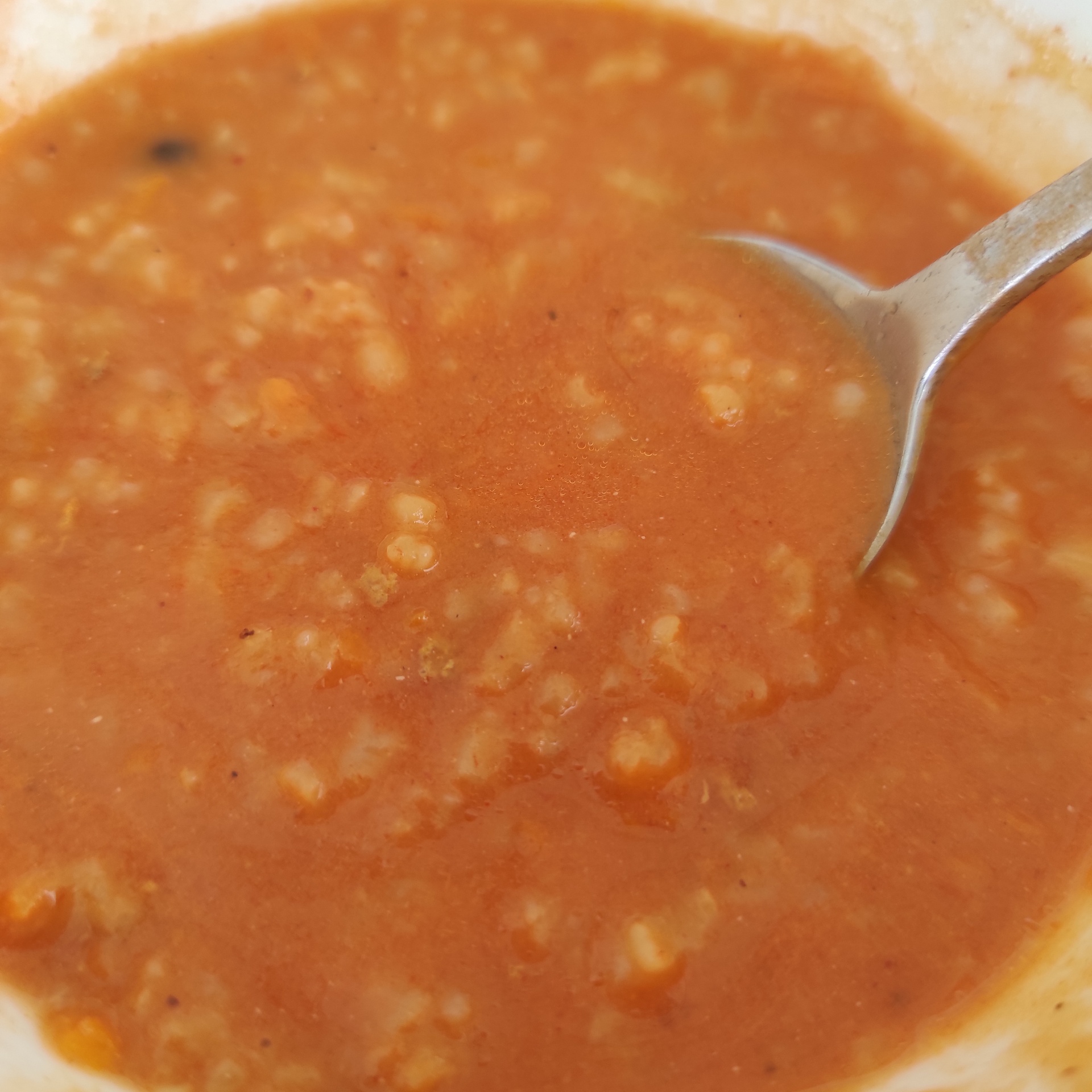 Niestety na wjeździe do Kodenia musieliśmy się schronić na stacji paliw przed kolejną falą deszczu. Ale żeby mieć siłę i przeczekać jeszcze ostatnia falę chmur z zachodu, zatrzymaliśmy się w zajeździe na wylocie z Kodenia. Zamówiliśmy zupę, półtorej porcji pierogów ze skwarkami i kawę. Zupy były dobre, ale te pierogi to były okropne! Nie jedzcie w Kodeniu!