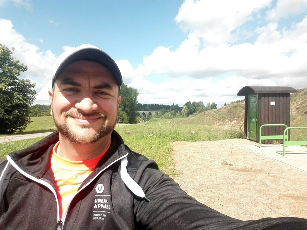 Melduję się w Stańczykach. Tam za mną widać ten potężny wiadukt kolejowy. A ja jestem już w warmińsko-mazurskim. Widoczne jest to dla mnie przede wszystkim tak, że jak narazie na każdym MOR jest kibelek. I to czysty! 🙂