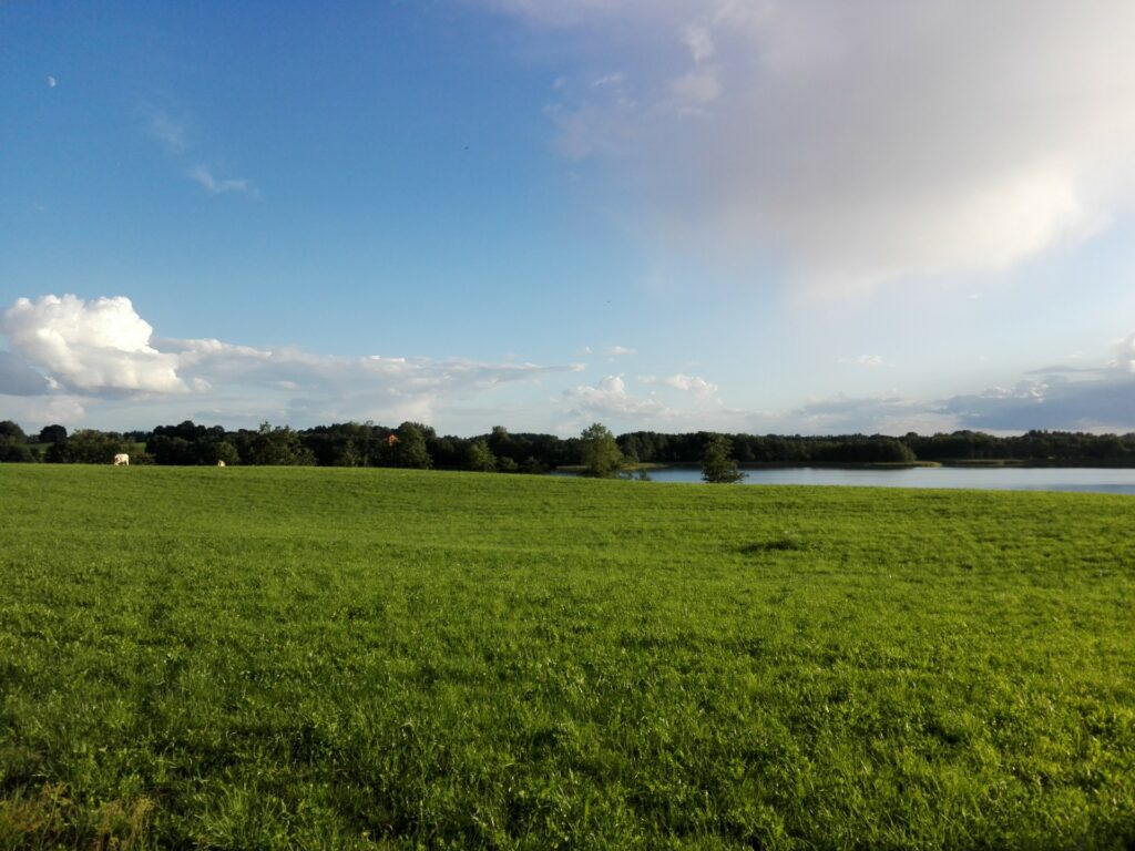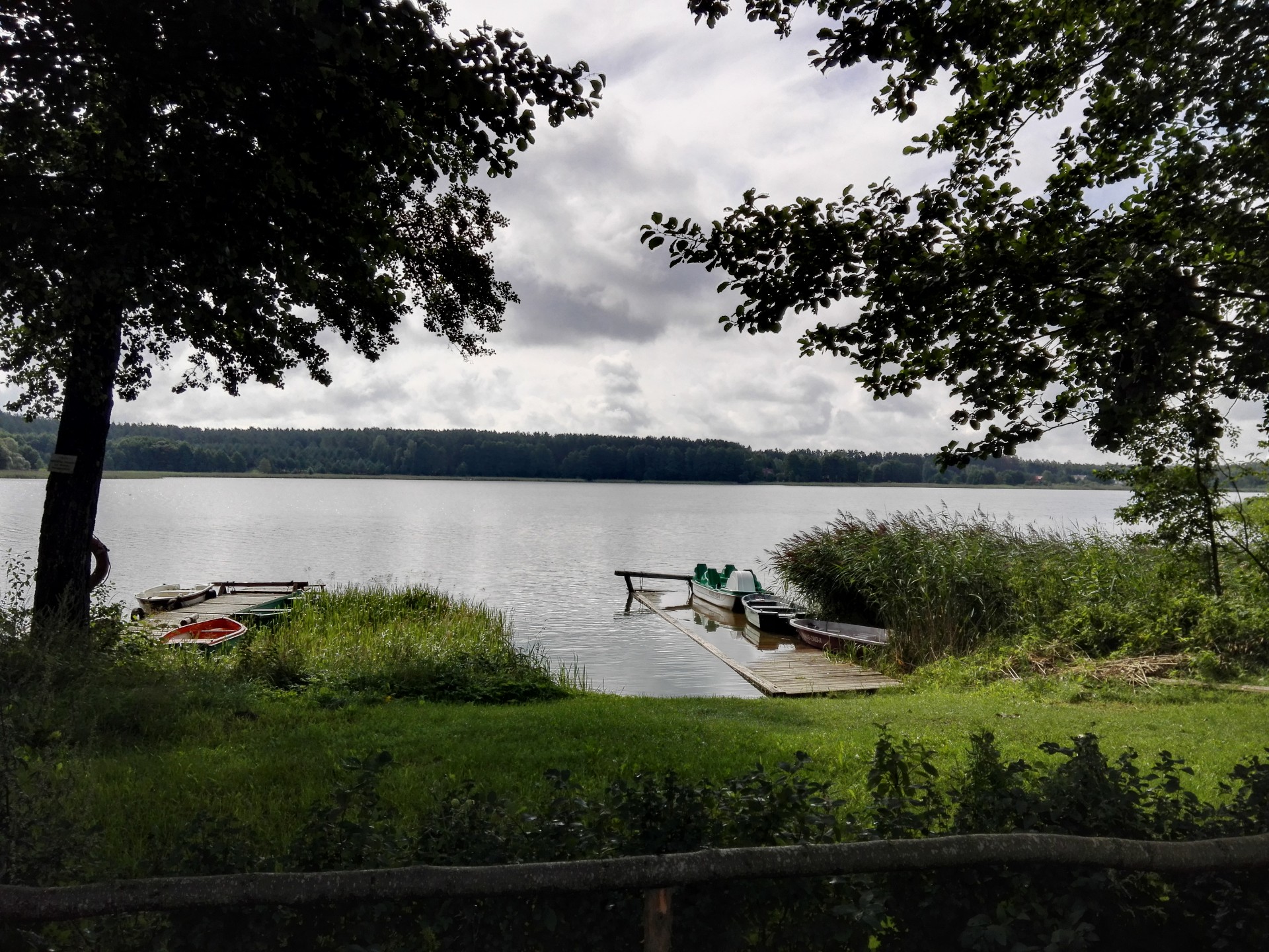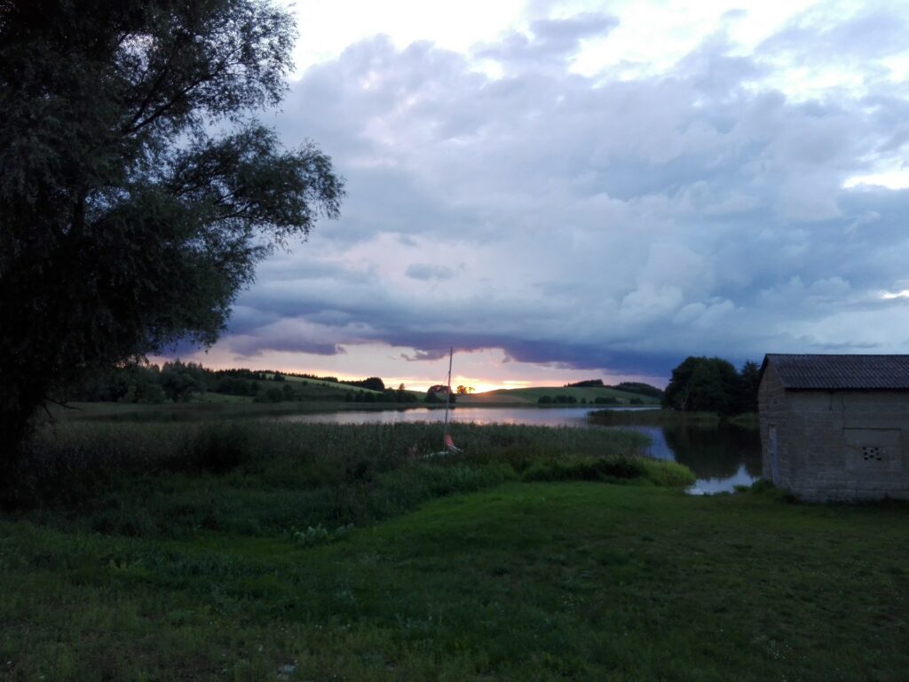 Ponieważ zbierała się potworna burza, musiałem szybciorem zasuwać do jeziora Wiżajny, gdzie czekał na mnie nocleg. Zdążyłem znowu przed samym deszczem. Same Wiżajny nie są przy szlaku GV – trzeba zboczyć, ale warto. Nocleg w agroturystyce był w porządku. Gospodyni sama produkuje sery z koziego mleka, więc jak ktoś lubi – można spróbować. Ja nie przepadam. A podobno po te sery to do niej z samej Warszawy przyjeżdżają 🙂 Przed zamknięciem sklepu udało mi się kupić bułki i kiełbasę, a „jajka Pan se kupisz u gospodyni na miejscu”. I rzeczywiście rano kupiłem od gospodyni świeże jajeczka. Rower mogłem zamknąć w stodole, co mi wyjątkowo pasowało. Ciepła woda, prysznic, świeża pościel i twarde łóżko… LUX! Jutro oby do Węgorzewa!