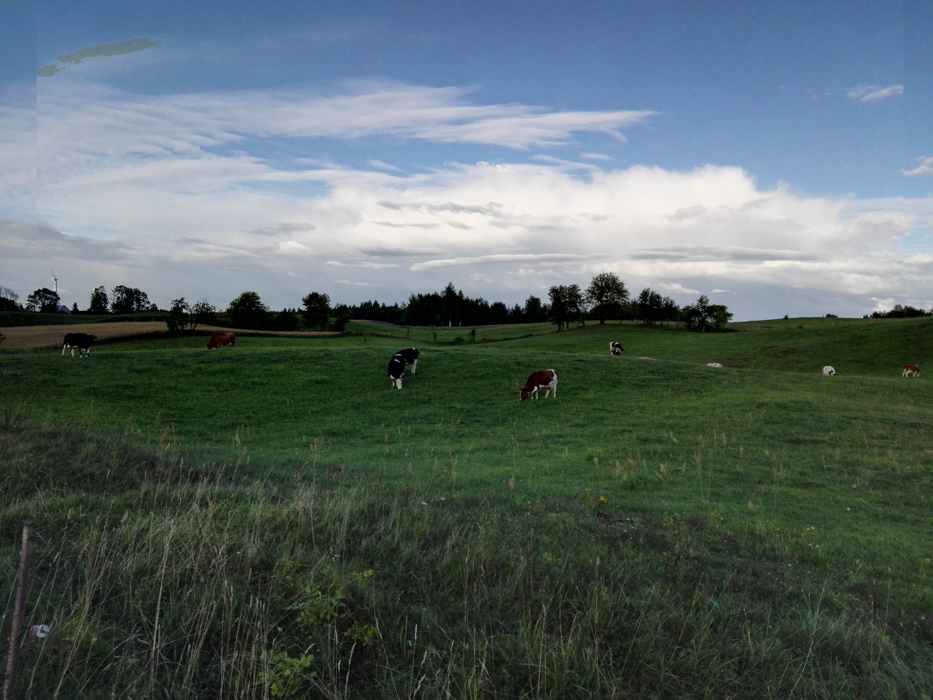 Zmienia się krajobraz radykalnie. Coraz więcej pasących się krów. Wszechobecne elektryczne pastuchy ( czyli druty pod napięciem, żeby twoja zwierzyna nie uciekła, albo obca nie zeżarła twoich plonów). Pagórki i wystające gdzieniegdzie głazy i większe kamienie z równo obskubanej trawy.