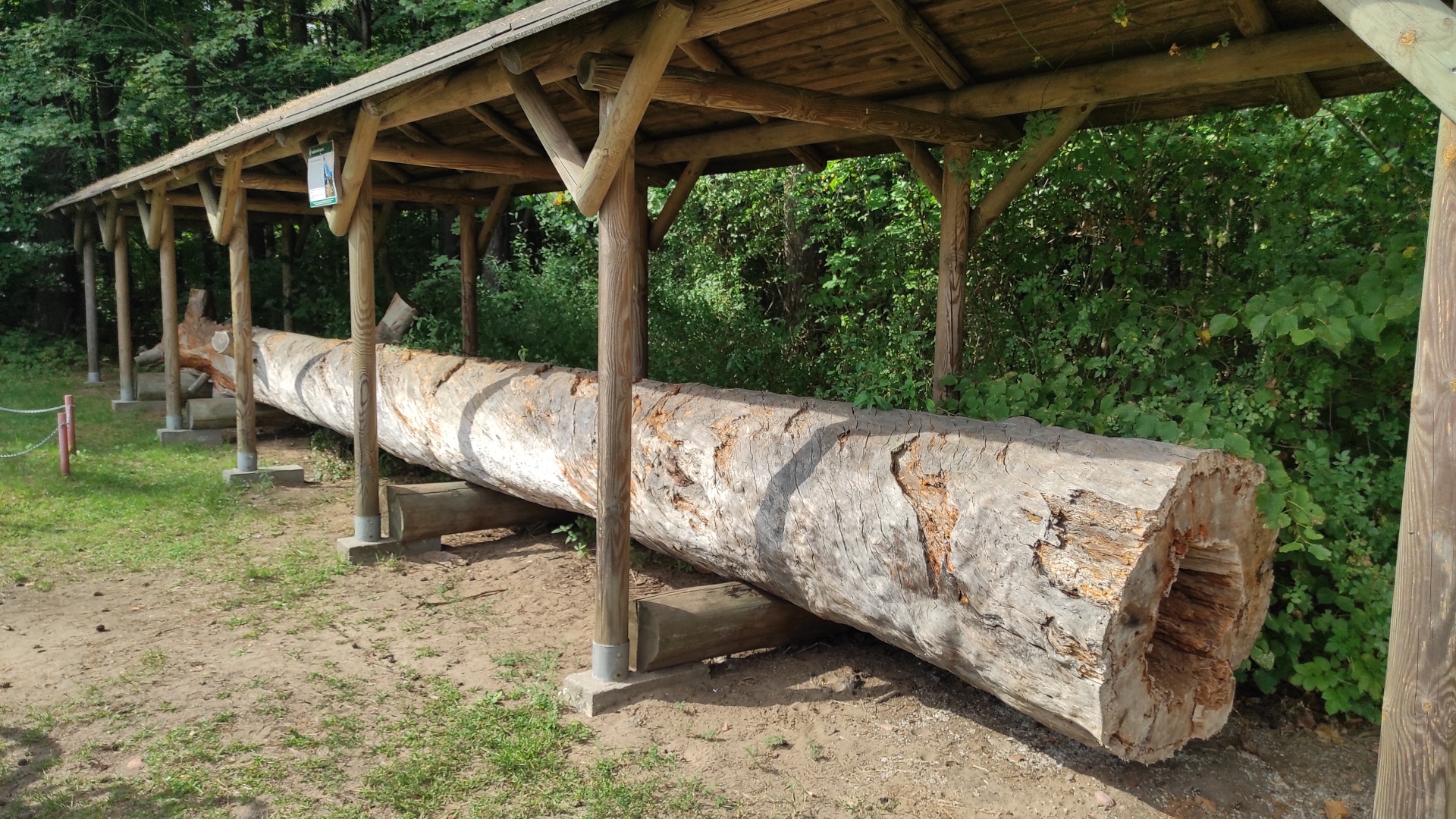 W końcu dojechaliśmy do Puszczy Białowieskiej a w zasadzie do Białowieskiego Parku Narodowego. Ponieważ nigdy jeszcze tutaj nie byłem, to oprócz potężnych drzew, zwłaszcza dębów robiących kolosalne wrażenie, mijana puszcza w której w odróżnieniu od zwykłych lasów, nie ma powalonych pni walających się gdzie i jak popadnie, spodziewaliśmy się obaj raczej leśnej ubitej ścieżki. Tymczasem niemal całą puszczę przejechaliśmy pięknym, gładkim asfaltem. Wiem, że mój zachwyt będzie się starać zmniejszyć jaki(a)ś eko-aktywist(k)a, ale jadąc tyle km rowerem z sakwami, bo o turystyce rowerowej z prawdziwego zdarzenia a nie niedzielnej mówię, to asfalt jest zawsze lepszy od utwardzonej jakiejkolwiek nawierzchni.