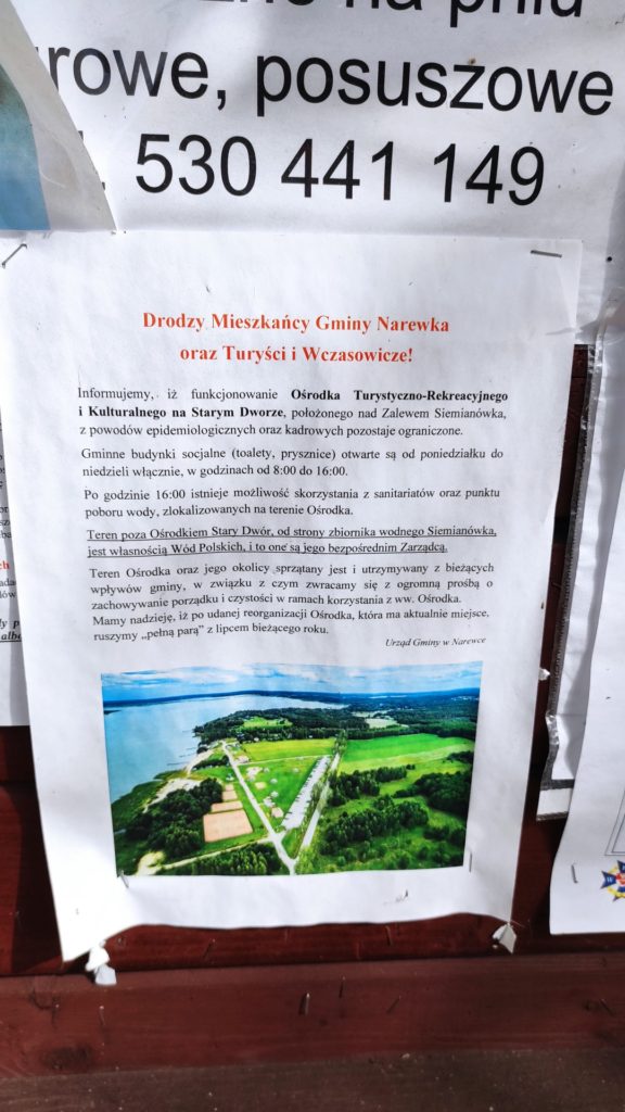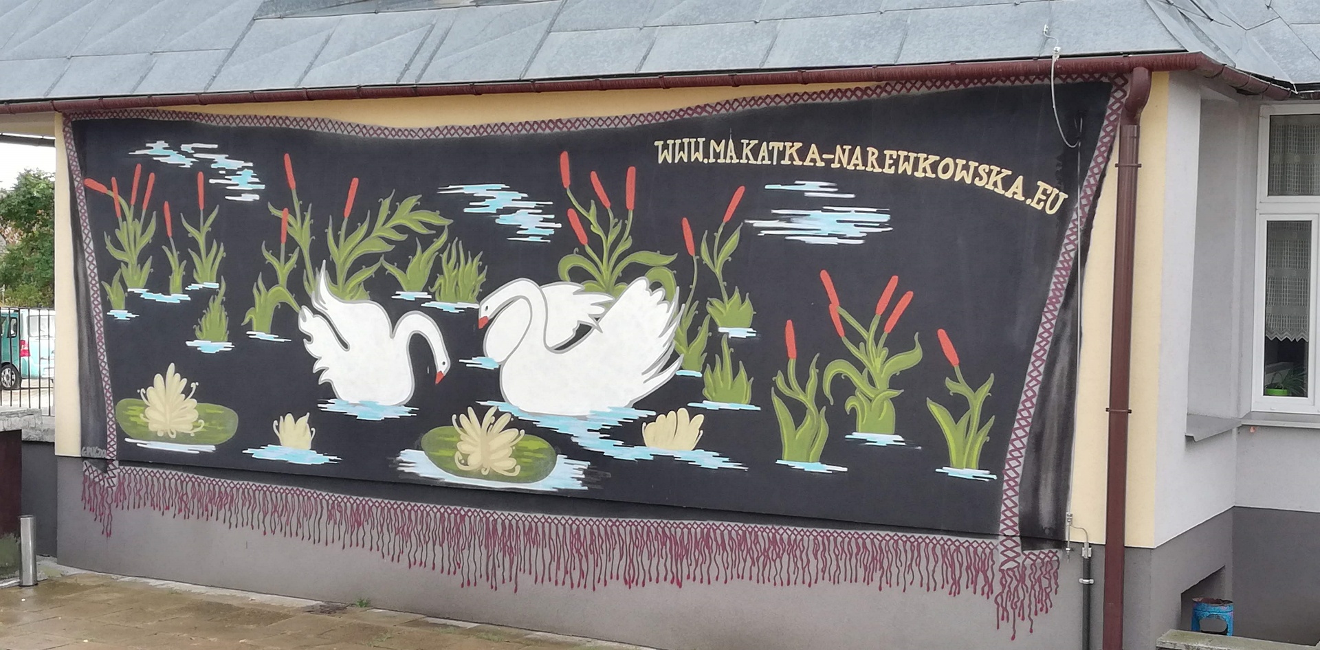 Zjedliśmy więc bardzo obfity obiad w Mikłaszewie w „Swojskim Jadle” i jak tylko skończyliśmy, musieliśmy gnać na Narew by uciec burzy. Jednak deszcz nas zaczął łapać, więc przeczekaliśmy go pod dachem jakiejś zamkniętej przychodni z widokiem na Makatki Narewkańskie namalowane na elewacji Gminnego Ośrodka Kultury.