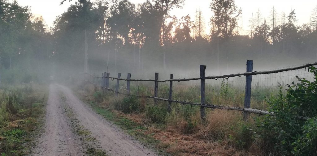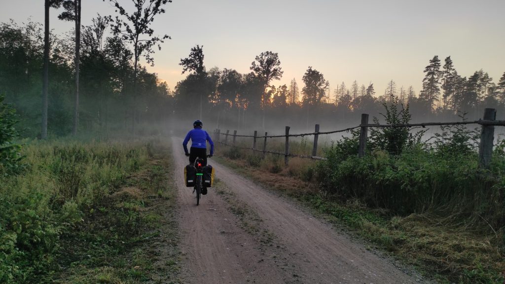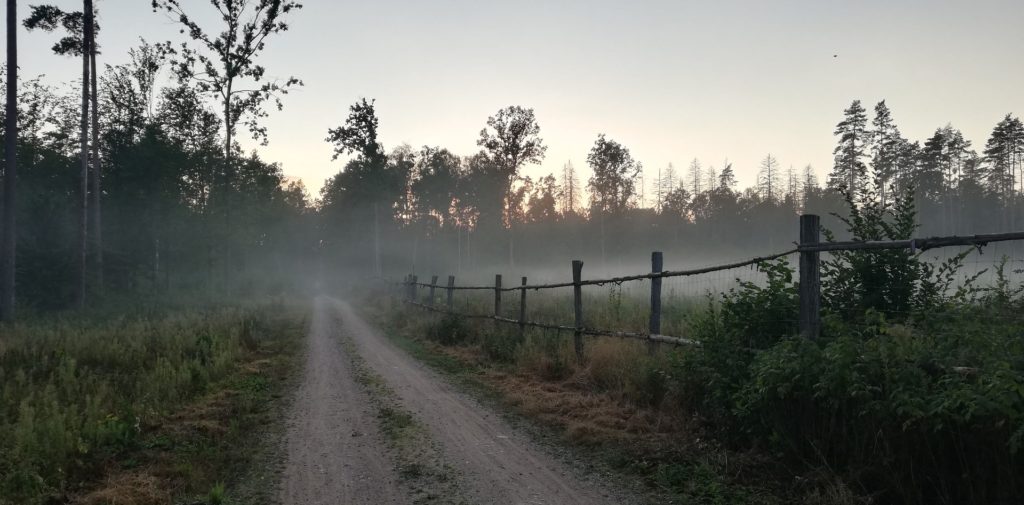 Do Hajnówki dojechaliśmy tuż przed zmrokiem, który wtedy zapadał o 19:33. A że Leśny Dworek, w którym załatwiliśmy sobie nocleg w specjalnej niskiej cenie jest położony obok szlaku GV blisko wjazdu do Hajnówki, to nie musieliśmy do niego daleko jechać.