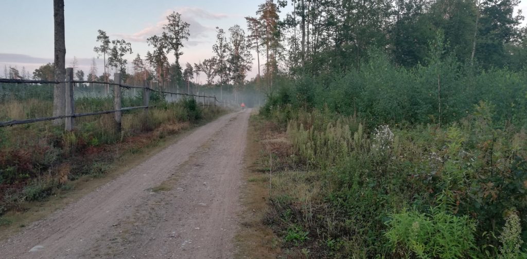 Pojechaliśmy dalej, bo już było późno, a przed nami przez puszczę ponad 100km. Na trasie oprócz zmieniającego się pejzażu mieliśmy w większości drogi asfaltowe.
