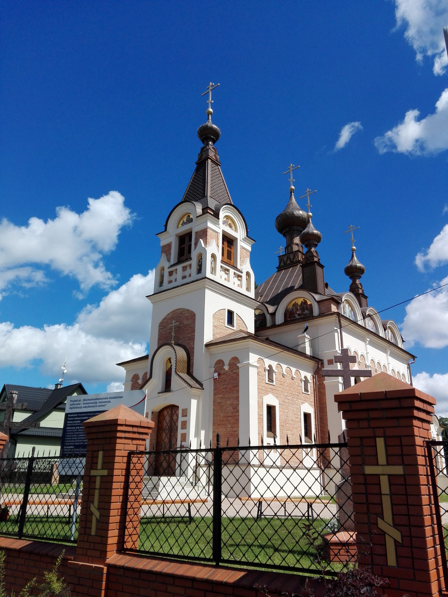 Po drodze w Sławatyczach można spotkać ciekawą sytuację, w której po obu stronach dość ruchliwej drogi stoją dwa kościoły. Dokładnie naprzeciw siebie stoi kościół katolicki i cerkiew prawosławna. I nikomu to nie przeszkadza, bo w tych terenach to normalne, przecież żyją tutaj od pokoleń zarówno katolicy jak i prawosławni. Bardzo mnie to cieszy, bo daje mi nadzieję, że może nie cała nasza Polska jest taka nietolerancyjna i monowierna, monopartyjna i mononarodowa jak by tego chcieli niektórzy z polityków?