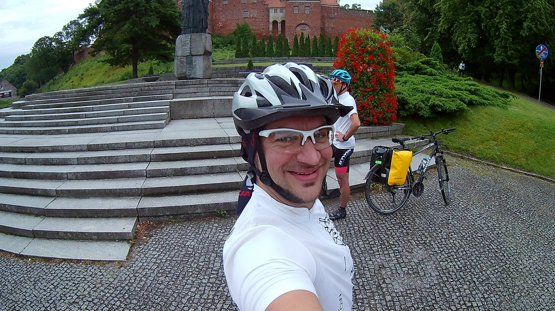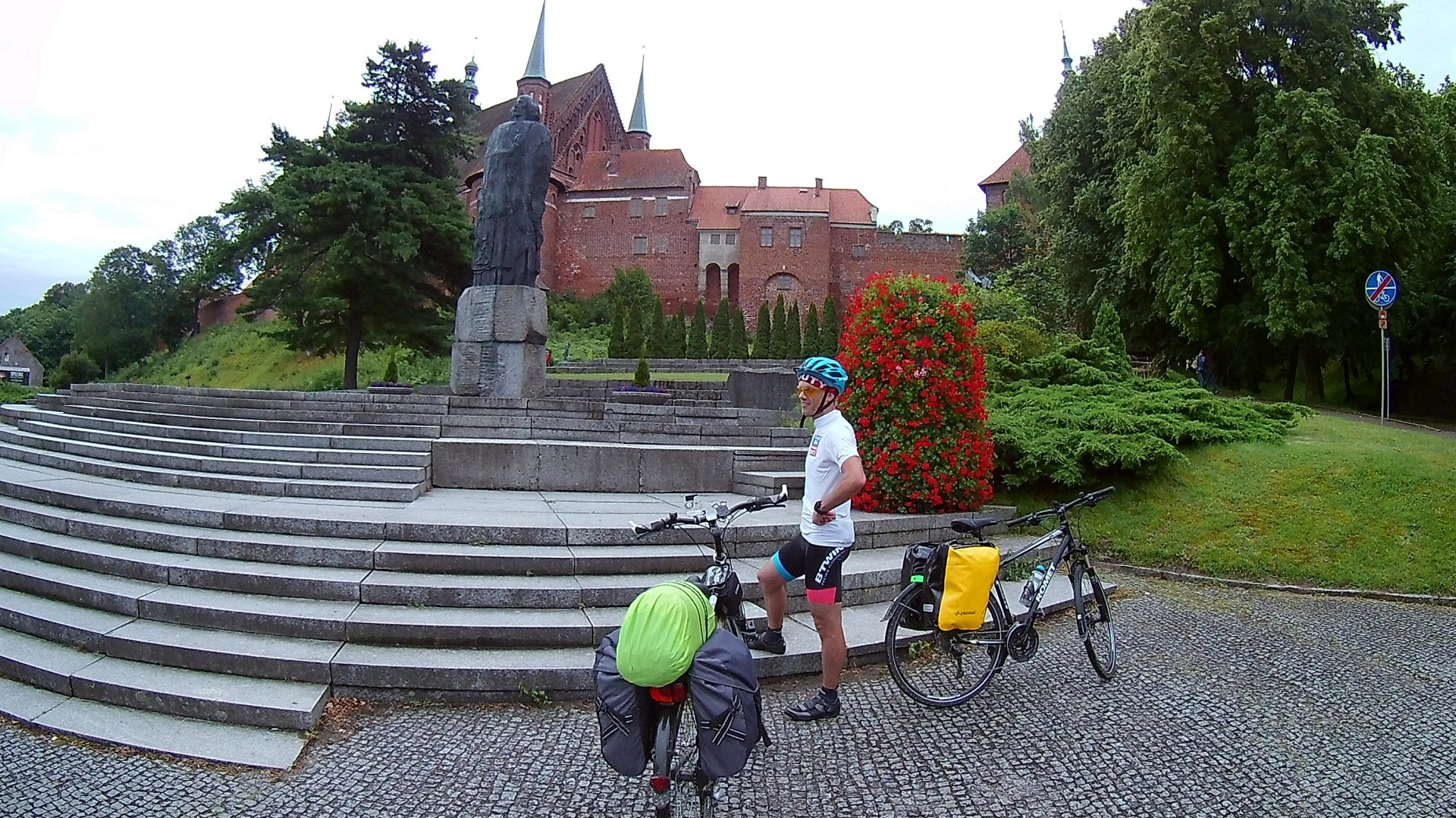 Poza tym we Fromborku zaliczyłem obok obserwatorium spektakularną glebę! Poszła krew. Dzień wcześniej tego samego w Malborku dokonał również Opał. Też krew poszła. Krótko mówiąc uczymy się SPD czyli buty spięte z pedałami. Fajne to, ale niebezpieczne 😂