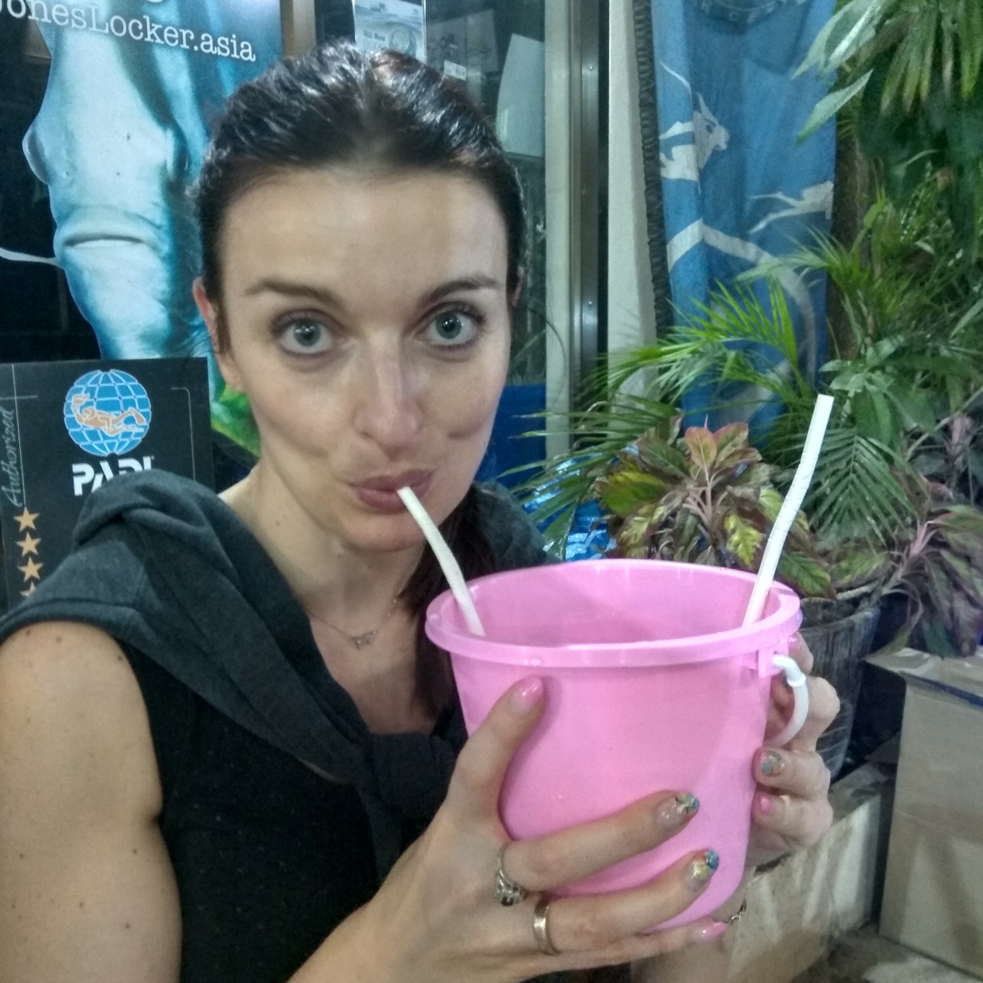 Codziennie wieczorem wstępowaliśmy na drinka (bądź dwa) z wiaderka w drodze do naszej chatki w Seashell Resort. Miejsc w których można się tak napić w tym rejonie jest sporo. My jednak upodobaliśmy sobie jedno miejsce, w którym obsługiwała bardzo sympatyczna Tajka w średnim wieku. Po całym dniu prowadzenia sklepu ze sprzętem do nurkowania (głównie firmy PADY’s), rozstawiała rolbar przed sklepem, kilka stolików i zaczynała drugą zmianę. Pomagał jej w tym jakiś młody chłopina, ale on drinków nie potrafi robić dobrych. Co innego ta Babeczka! Polecam to miejsce na Walking St.