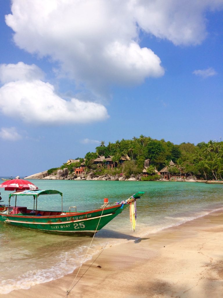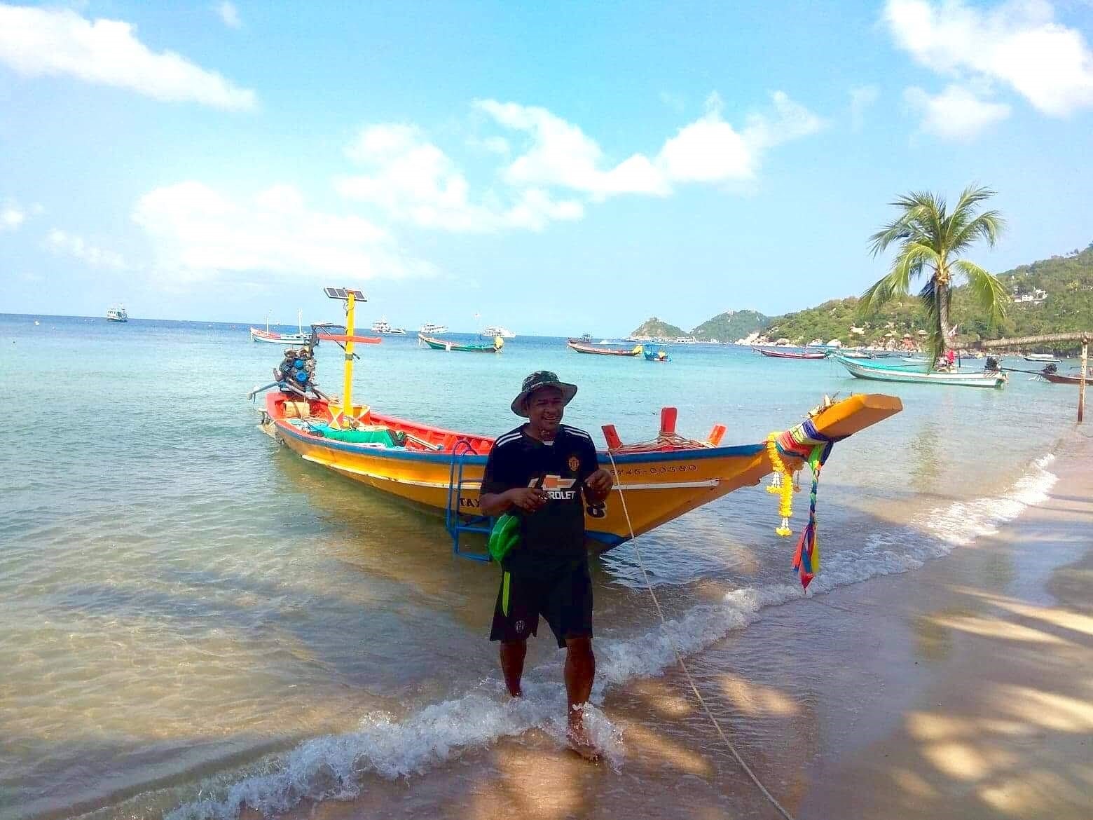 Słyszeliśmy że warto wziąć „taxi boat” i wybrać się na sąsiednią malutką wysepkę Nang Yuan. Dlatego po sytym śniadaniu trzeciego dnia na wyspie, udaliśmy się łódką zobaczyć, co tam się dzieje nieopodal. O umówionej porze rano wsiedliśmy z kilkoma innymi turystami na drewnianą łódkę zapędzaną silnikiem na długim wysięgniku.