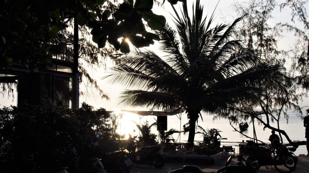 Spektakle zachodów słońca oglądaliśmy codziennie sącząc drinki na plaży. Atmosfera panująca na wyspie luźna, trochę hippisowska, skłaniająca do zawierania nowych znajomości. Ludzie naprawdę wyluzowani i ogólnie tempo życia o wiele wolniejsze niż w zatłoczonym śpieszącym się nie wiadomo gdzie Bangkoku. Do tego cała ta „nurkowa” kultura. Wszak to miejsce kultowe dla wszystkich pasjonatów nurkowania. Jedzenie nie zachwyciło nas tak jak na północy Tajlandii. No i te widoczki jak z pocztówki! Zapamiętam je na długo!