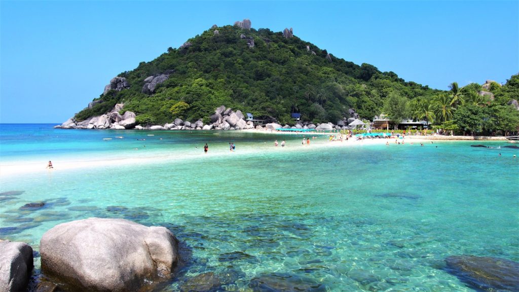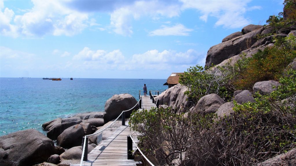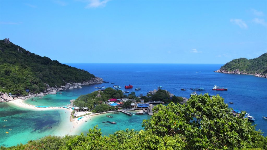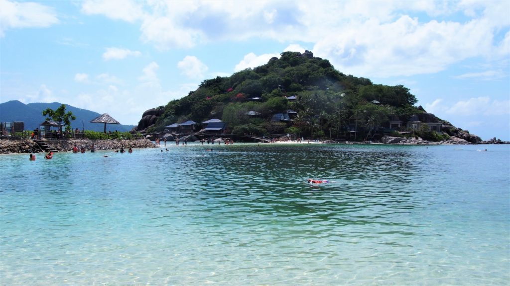 Nang Yuan, to tak naprawdę dwie małe wyspy połączone ze sobą dość wąskim pasem piaszczystej plaży. Mniej więcej pośrodku tej piaszczystej plaży z boku jest maluteńki kawałek ziemi wystający z wody – wystarczający do tego, by można było zrobić małą keję dla przybywających na wyspę. Wstęp na wyspę jest płatny. I od tego momentu zaczynamy doświadczać komercjalizacji na poziomie, który w Empire State Building w Nowym Yorku mnie zdumiał. Dosłownie – z rozdziawioną buzią nie mogłem się nadziwić a moja mina dokładnie pokazywała, co się działo w mojej głowie! To było wielkie pytanie: „a to tak można???” Sztuka wyciągania pieniędzy z portfeli turystów na tej wyspie była dopracowana w najmniejszych szczegółach. Sama wyspa jednak, punkt widokowy na szczycie jednej z wysepek i rafa koralowa przy plaży, gdzie można ponurkować i podziwiać kolorowe, zachwycające rybki w ich naturalnym środowisku oraz plaża – to wszystko warte jest pojawienia się i sypnięcia groszem.