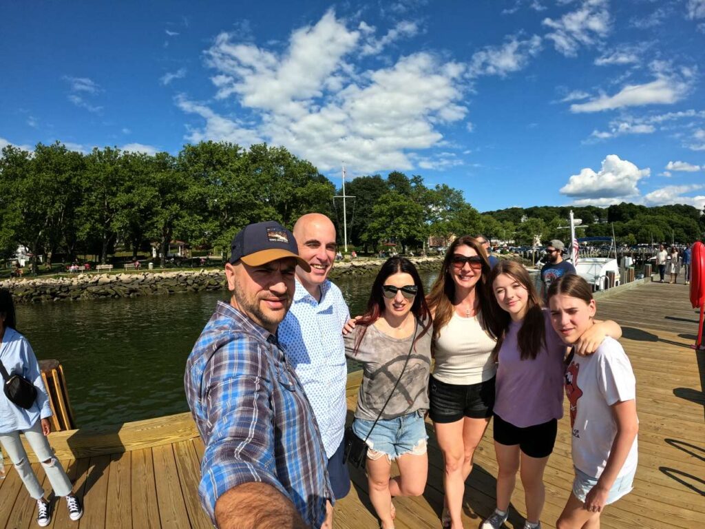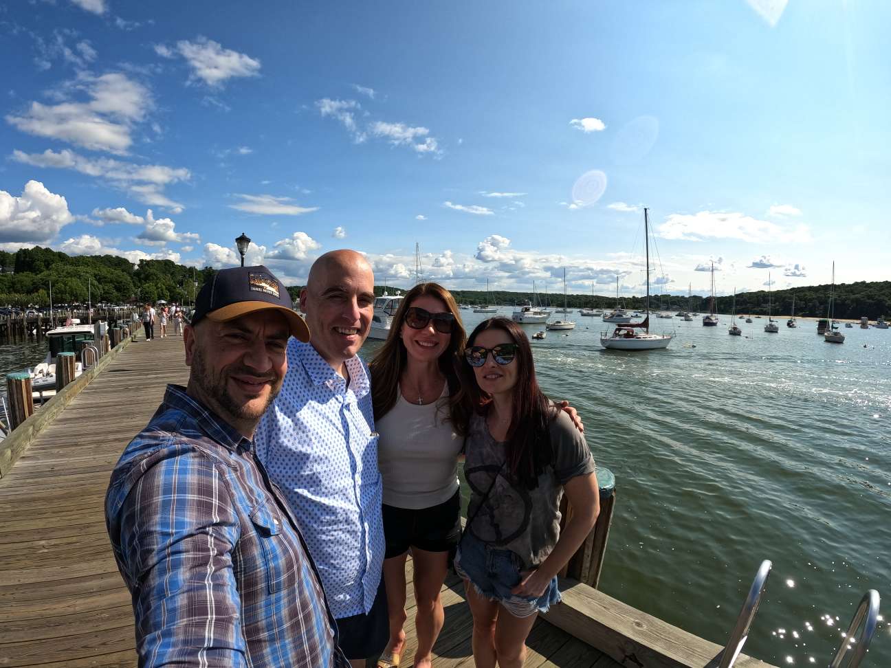 Pojechaliśmy na Penn station by z dworca LIRR (Long Island Rail Roads) pojechać pociągiem do Huntington na Long Island do naszych Przyjaciół Dagmary i Scotta. W godzinę i 10 minut byliśmy na miejscu. Dagmara zgarnęła nas z dworca i zabrała do nich do domu. Zjedliśmy coś i ruszyliśmy zobaczyć okolicę. Dagmara i Scott mieszkają w Centerport i oprócz dzielnicy domów jednorodzinnych bardziej i nieco mniej okazałych położonych na pagórkowatym terenie są jeszcze zatoki okalające wyspę. A tam marina i całe mnóstwo żaglówek i łodzi zacumowanych na bojach w akwenie zatoki. Pogoda piękna, to zachciało nam się spacerów. Park gminny ze sporym oczkiem wodnym niemal całkowicie przejęty przez gęsi kanadyjskie zostawiające po sobie mnóstwo brązowych oznak swojej obecności.
