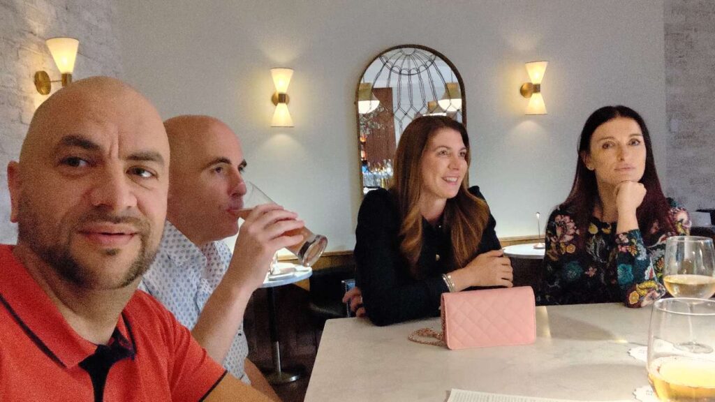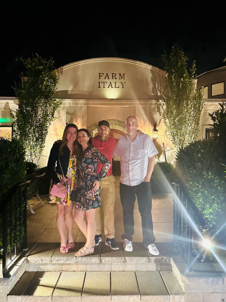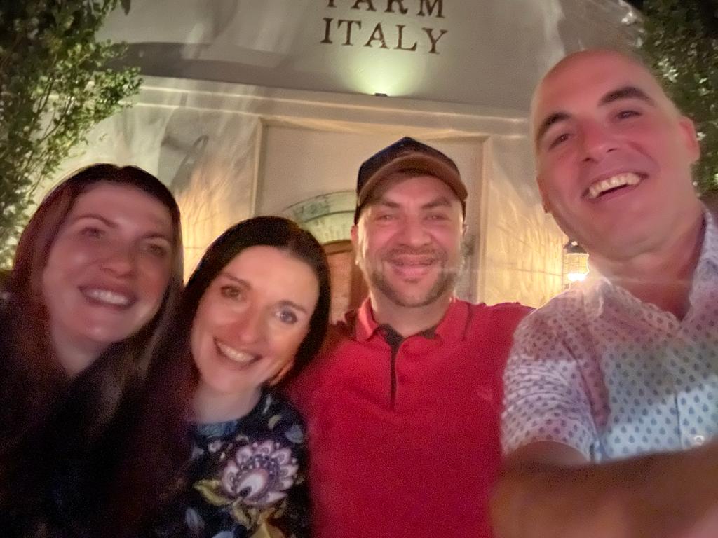 Po powrocie do domu Dagi i Scotta, dzieciaki zostały z Babcią Krysią, a my ubraliśmy się nieco lepiej i pojechaliśmy na kolację, bo udało się Dadze zrobić „w tym super popularnym miejscu” rezerwację. Mowa o Farm Italy. Obsługa fantastyczna! A jedzenie! Uh la la! Coś wspaniałego! Zamówiliśmy trzy startery, którymi się podzieliliśmy, zresztą podzieliliśmy się wszystkim. I dobrze, bo dzięki temu wyszło, że moje papardelle z wołowym bolognese było najsłabszą pozycją, a pozostałe potrawy wyśmienite. Sosy w tych potrawach to był majstersztyk! Do tego stopnia że poprosiliśmy jeszcze o pieczywo dodatkowo, by móc wyczyścić talerze z tych wspaniałych sosów. Do tego dobre wino, cudowne towarzystwo i przepis na niezapomniany wieczór gotowy!