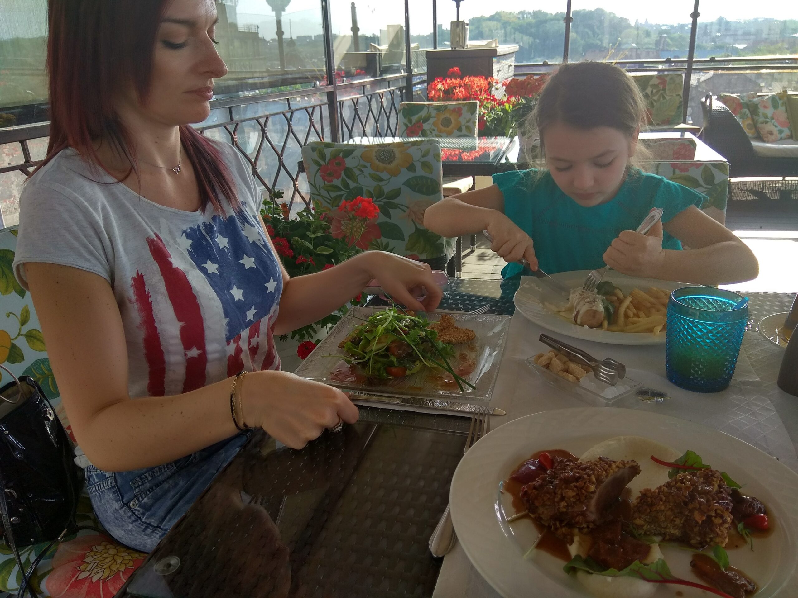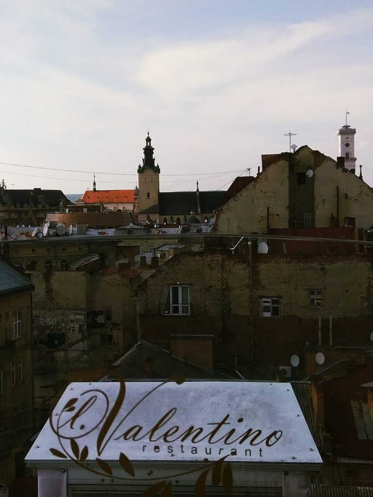 Restauracja Valentino w hotelu szwajcarskim. Patrycja znalazła recenzję tego miejsca. Polecamy się tutaj wybrać. Za 100 zł obiad dla naszej trójki na najwyższym poziomie ( i wcale nie chodzi wyłącznie o taras na dachu). Kubki smakowe dopieszczone. Obsługa tip-top. A widoki! Warte miliona dolarów! Ja rozumiem Polaków, którzy jak już przyjadą do Lwowa to oczekują obiadu do 50 zł dla trójki osób, no ale spróbujcie zjeść wykwintny obiad w Krakowie w świetnej restauracji dla trojga za 100 zł… Wątpliwe, by 500 zł wystarczyło. Dlatego tacy hedoniści jak my polecają dać się „dopuścić u Lwowi” 😜