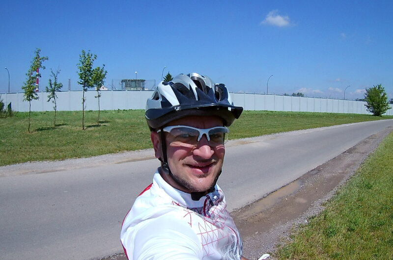 Ach! Co to była za wycieczka! Na zdjęciu widać mnie na tle więzienia o zaostrzonym rygorze, w którym znajdują się najgorsze męty. To więzienie w Załężu i przejeżdżałem obok niego tydzień temu w niedzielę. A dzisiaj? Film z tego wyjazdu zmontowałem i jestem z niego naprawdę zadowolony! I z wyjazdu i z filmu 🙂