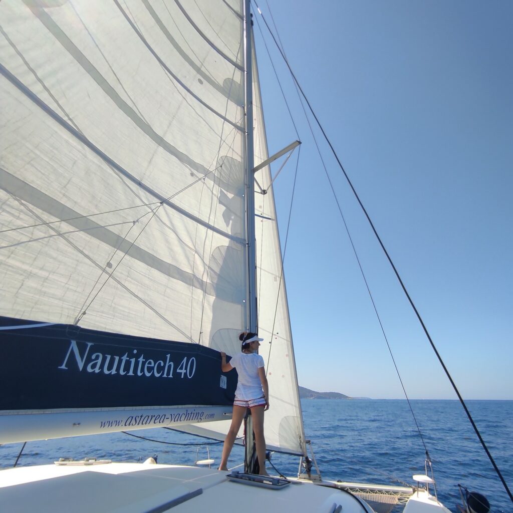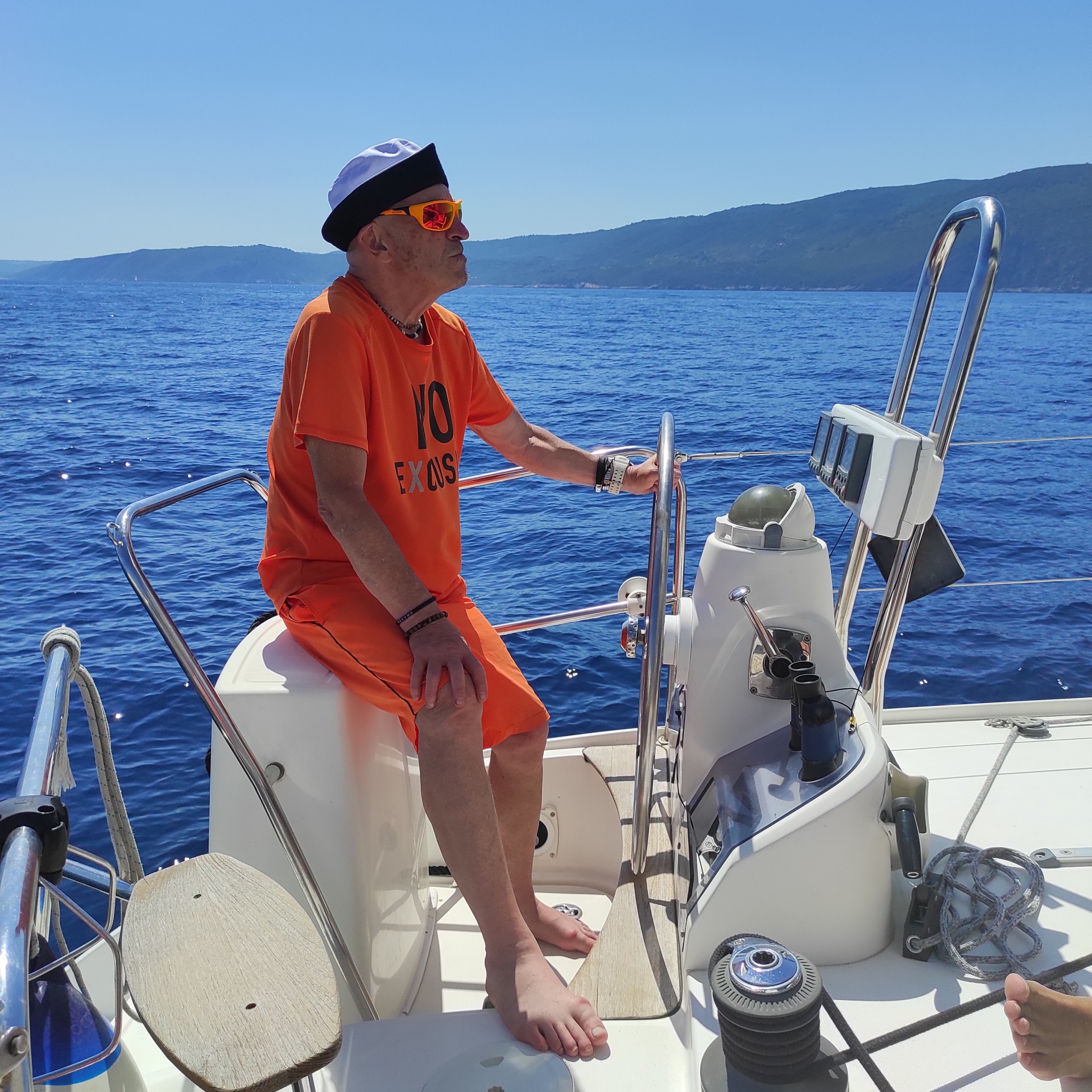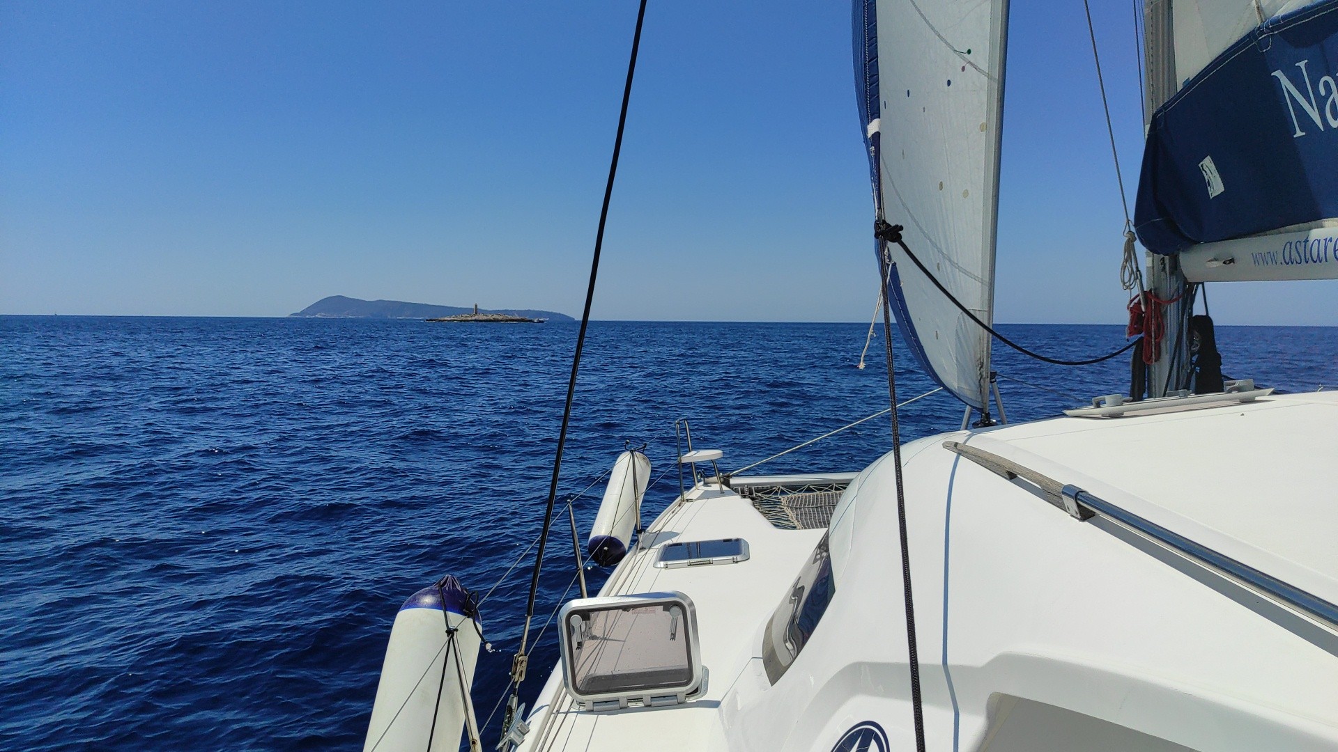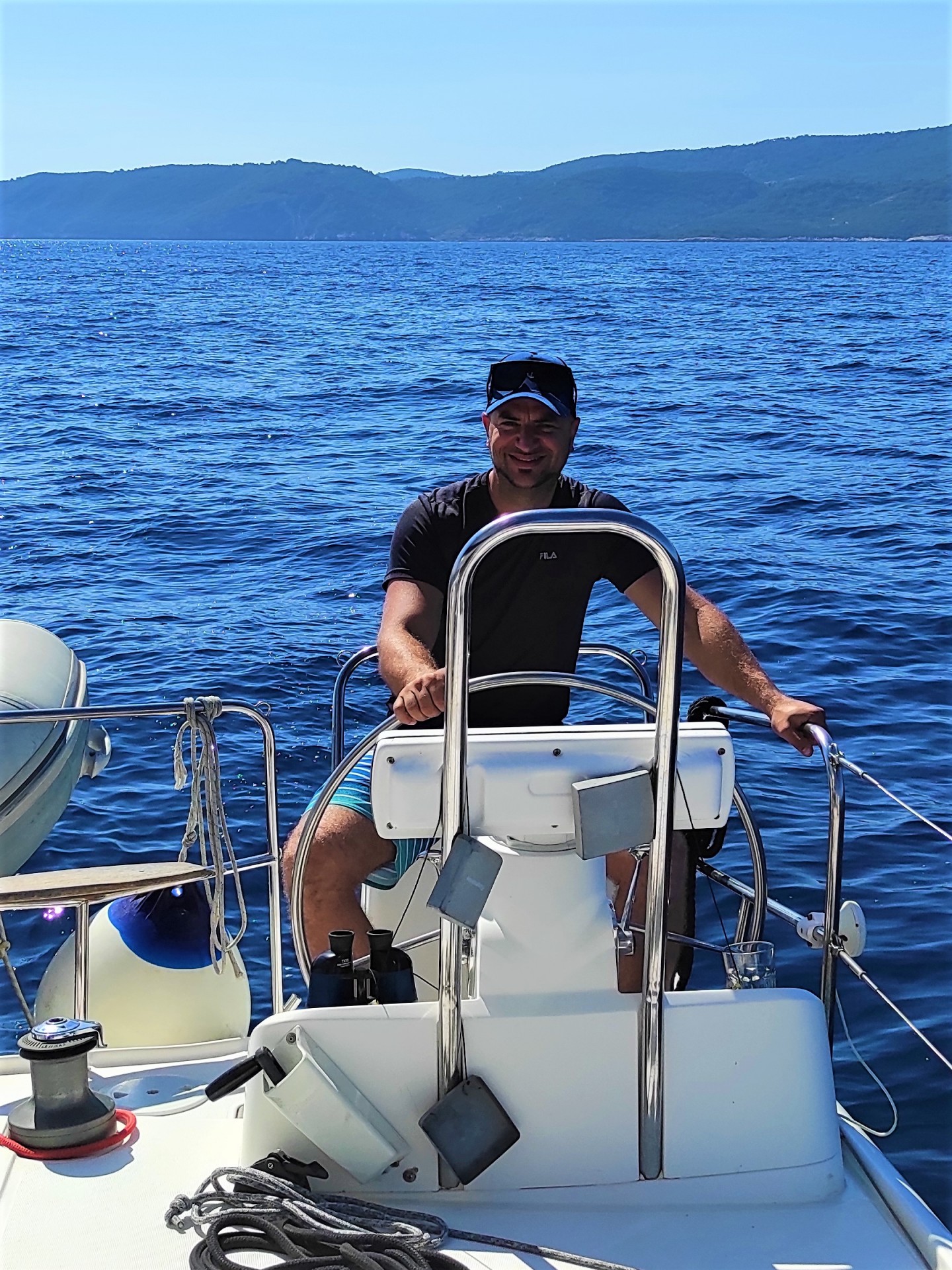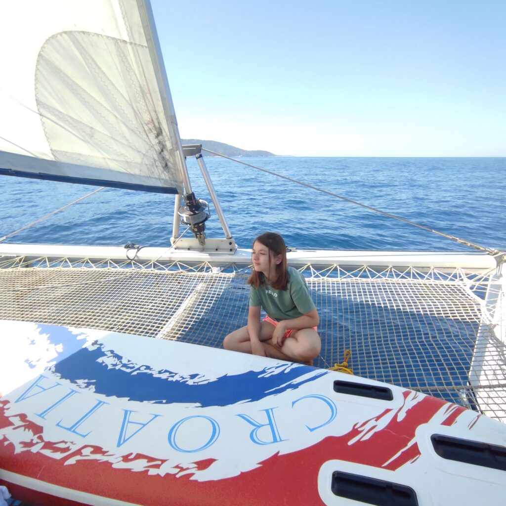 Nie była to długa droga, bo musieliśmy zaledwie opłynąć wyspę Vis od jej północnej części by dostać się do Komižy znajdującej się po zachodniej wyspy. Mimo to była okazja znów stawiać żagle i trochę posterować jachtem pod czujnym okiem Kapitana. To naprawdę wspaniałe uczucie i nie da się tego porównać do kierowania samochodem w żadnym wypadku. Nie ma tutaj drogi którą się poruszamy. Musimy obserwować wiatr, jego zmiany i nasilenie i w zależności od tego korygować kurs łodzi w stosunku do obranego kierunku. Wyostrzanie kursu i odpadanie od niego – zrozumieją to tylko Ci z Was, którzy kiedykolwiek spróbowali żeglarstwa. W porównaniu z pływaniem po jeziorze (z czym jak dotychczas wyłącznie miałem styczność), jest o wiele więcej przestrzeni i jak mi się wydaje, więcej czasu na wykonanie manewru zwrotu czy zmiany kierunku.