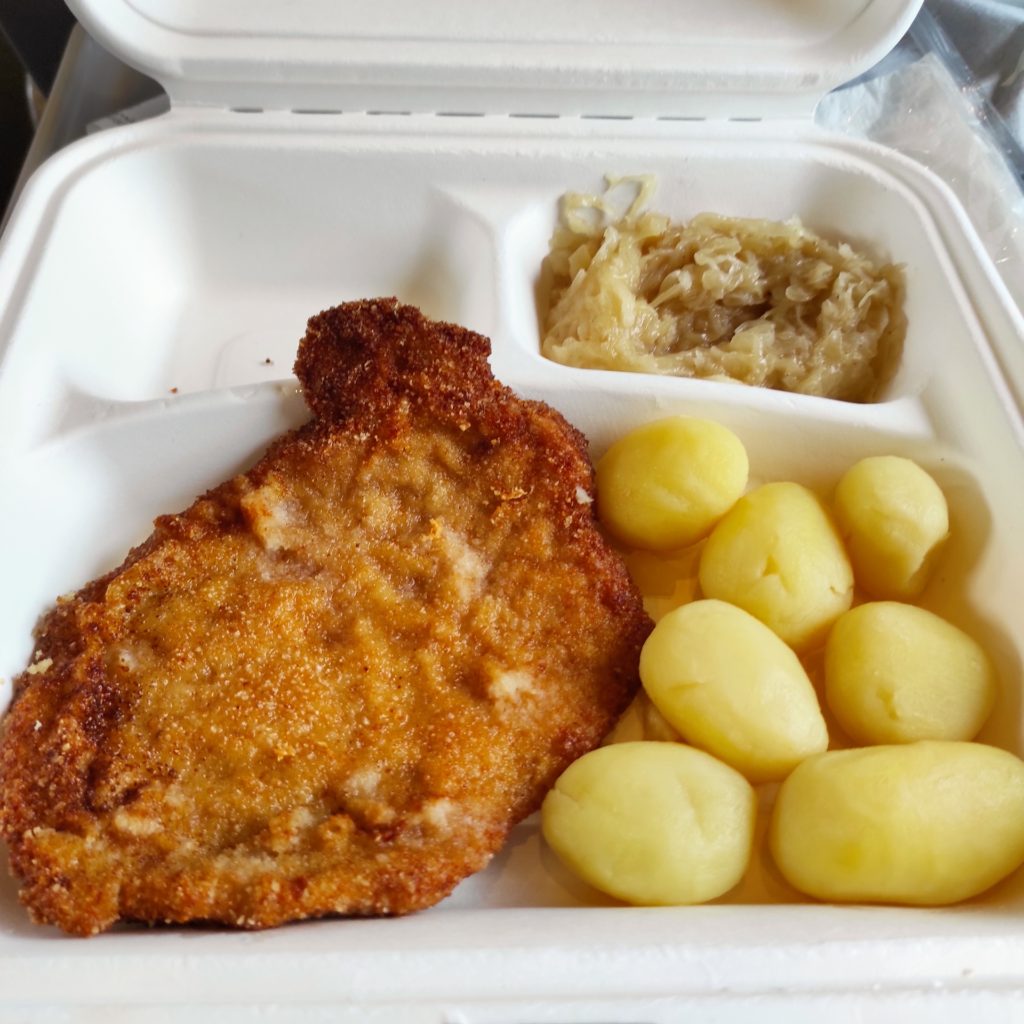 A w porze obiadowej, zamówiliśmy sobie obiad z Warsa. Powiem Wam, że ten schabowy, który zamówiliśmy był naprawdę niezły! I nawet nie był jakiś szczególnie drogi, bo 28zł. Tyle kosztował też schabowy na wyspie Energetyka na Solinie w Tawernie. Także: „Wars wita Was, Wars wita nas, Wars wita…”