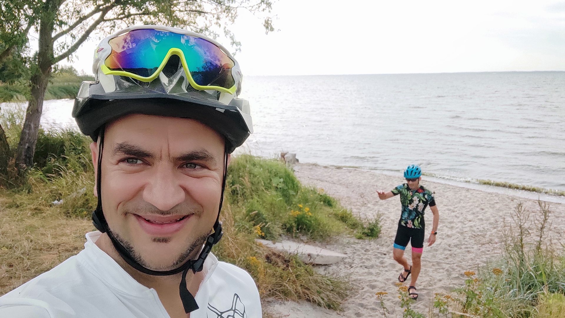 Z Elbląga ruszyliśmy w kierunku Tolkmicka. Jeśli ktoś z Was myśli, że na Pomorzu i Warmi nie ma górek, to się grubo myli! Jeszcze zanim minęliśmy tablicę końca Elbląga byliśmy mocno zdyszani i spoceni. Minęliśmy wyciąg narciarski na jednej z górek! Tak to prawda! Mają tu wyciąg narciarski! Dopiero gdy dojechaliśmy do zalewu wiślanego zrobiło się na chwilę płasko. W samym mieście Elblągu infrastruktura rowerowa jest dobra. Na obrzeżach zmienia się w płyty betonowe pamiętające czasy kolejek po mięso na kartki. Jednak za wyciągiem narciarskim pojawia się dość długi odcinek przez las utwardzoną ścieżką (o ile nie ma deszczu).