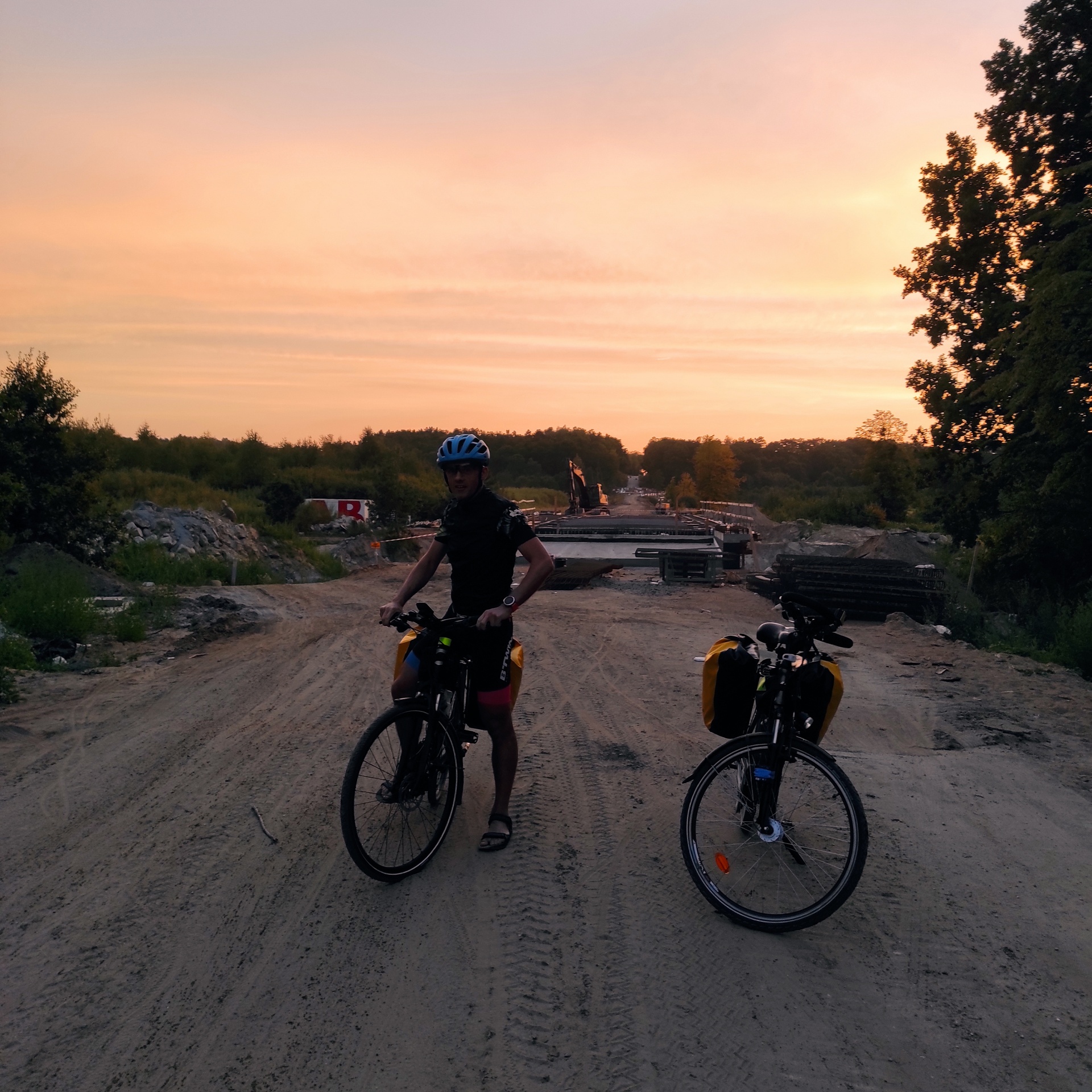 Było bowiem już dość późno. Na trasie się okazało, że droga wojewódzka którą się poruszaliśmy, jest w remoncie. Dlatego spory odcinek jechaliśmy piaszczystą nawierzchnią a resztę nowiuteńkim i pustym asfaltem. Tym asfaltowym pustym odcinkiem jechało się po prostu wspaniale! W połowie remontowanego odcinka musieliśmy jednak przekroczyć rzekę. Bo w końcu jakiś powód braku ruchu musiał być? Tyle tylko że most jest w trakcie budowy, dlatego przekroczyliśmy ją prowizorycznym drewnianym wąskim pomostem.