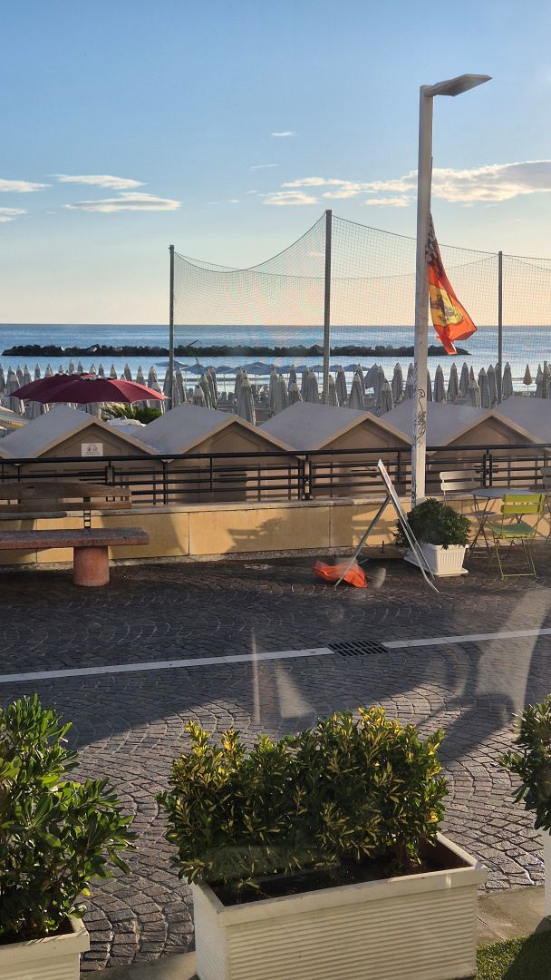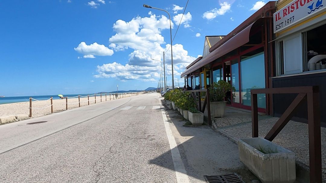 Dzisiaj jechałem wzdłuż wybrzeża niemal cały czas. Po lewej plaże – dzikie, częściej zagospodarowane, ogrodzone, jeśli jechałem przez jakąkolwiek miejscowość turystyczną, to wówczas przy plażach „bagno” z restauracją czy barem, parasole i leżaki na plaży. A wzdłuż chodnik, ścieżka rowerowa, która czasami była pomalowana na niebiesko, wzdłuż ścieżki jezdnia coraz częściej dwupasmowa, a po prawej stronie jezdni hotele, restauracje, sklepiki. Po kilku godzinach jazdy plaże częściej były poprzedzielane falochronami z wielkich kamieni, czasem nie było piaszczystej plaży, a po prostu kamienny brzeg. Większa różnorodność. Często mijałem plaże, z których faceci zajmujący się nimi, przynosili na ścieżkę rowerową leżaki, myli je, wystawiali do wysuszenia, by później składać te leżaki na stos na tyłach plaż. Wyglądało mi to, jakby przygotowywali się już do zakończenia sezonu. Czasami mijałem plaże, na których już nie było leżaków, ani parasoli, a bary i restauracje były zamknięte na głucho.