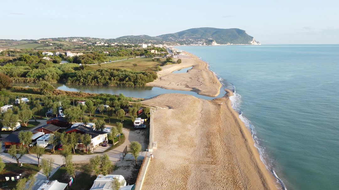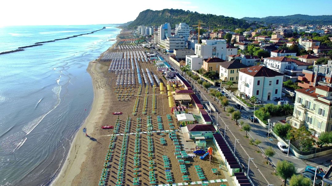 Podobnie jak w poprzednich dniach, pojechaliśmy osobno z Fabianem. Umówiliśmy się, że dzisiaj będziemy jechać do Camping Bellamare. Nie mieliśmy rezerwacji, bo jak w poprzednich przypadkach, nie da się zrobić rezerwacji na jedną noc rowerzyście z namiotem, ale chociaż Pani zapewniła mnie, że nie będzie problemu, bo miejsce dla nas będzie. Przed nami więc dzisiaj do przejechania troszkę ponad 90 kilometrów, więc „bułka z masłem”, bo pogoda sprzyjała i mieliśmy jechać głównie po płaskim z dwoma podjazdami w Anconie i za nią, czyli standardowo – pod koniec dnia… Jakby na dobicie! Na telefonie, gdy to oglądaliśmy, nie wyglądało to strasznie, a jak wyjdzie? Zobaczymy. Ruszyłem najpierw przez Pesaro ścieżkami rowerowymi. To miasto zdecydowanie bardziej atrakcyjnie wygląda w słońcu! Bez dwóch zdań. Deszcz odbiera mu sporo z uroku. Ładnie wyglądały te wszystkie hotele, nadmorskie plaże, ludzie nieśpiesznie idący, jadący rowerami na zakupy, czy załatwiając jakieś sobie tylko znane sprawunki. Ruch uliczny niezbyt wielki. Słowem, widać gołym okiem, że sezon turystyczny już się prawie skończył i ludzie, których mijam, to raczej mieszkańcy tego miasta.