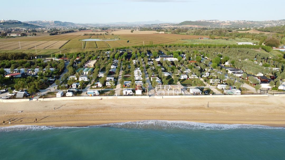 Gdy wjeżdżałem na kemping, Fabian stał na wjeździe i mnie przywitał. Okazało się, że rzeczywiście na polu namiotowym stał radiowóz Carabinieri a w recepcji dziewczyna poprosiła nas o jeszcze chwilę cierpliwości, bo muszą zająć się policją. Nie trwało to długo, a dostaliśmy pozwolenia na wjazd, pokazano nam, gdzie możemy rozbić namioty. Wyjaśniło się też, co to za wypadek. Smutna to historia, bo starszy Pan, który był na kempingu kamperem, źle się poczuł w dzisiejszych upałach na plaży. Wezwano pogotowie, ale człowiek ten zmarł. Przykra sytuacja. Zwłaszcza, że jego żona została teraz sama i musiała sobie poradzić z ogarnięciem sytuacji, kampera itd. Gdy już rozbiliśmy namioty, poszedłem popływać nieco w morzu łapiąc ostatnie promienie słońca, a gdy wróciłem z łazienki po kąpieli, życie na polu namiotowym wróciło już do normalności.