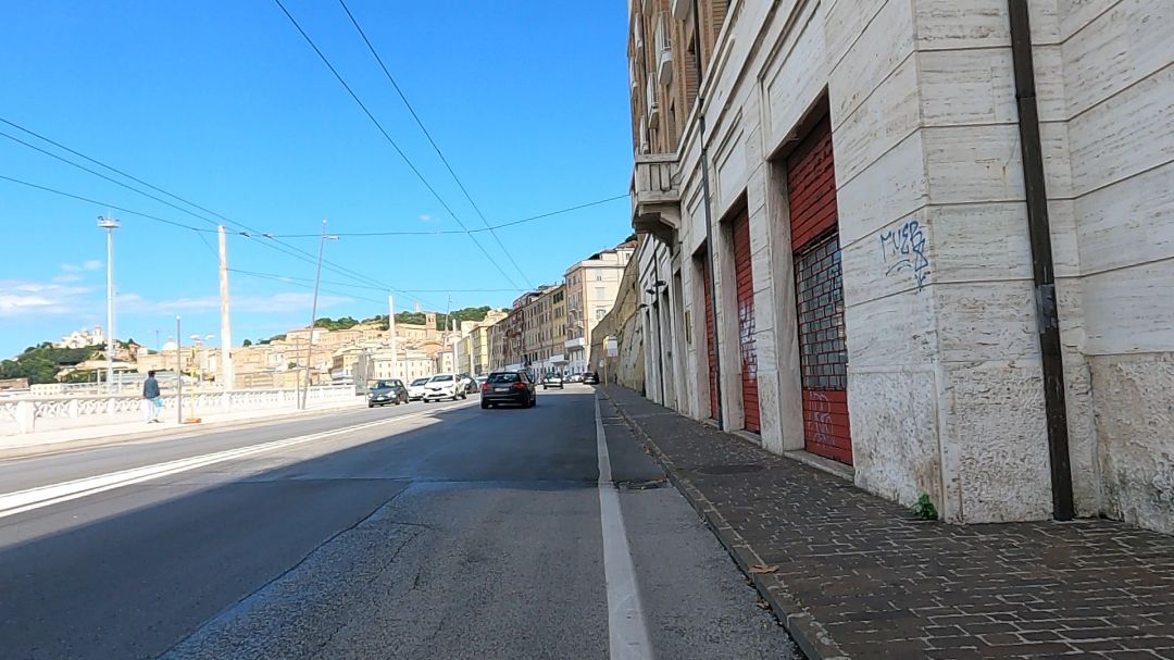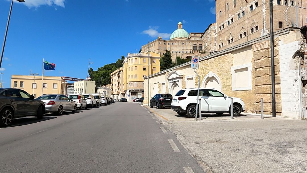 Dwie godziny później dojechałem do Ancony. To stare portowe miasto pamiętające jeszcze czasy z IV wieku p.n.e. Nazwa Ancona wywodzi się z greki i oznacza łokieć, który to cypel, na którym miasto stoi przypomina. Początkowo była kolonią grecką, później częścią cesarstwa rzymskiego, by w XVI wieku być częścią państwa kościelnego. W historii miasta jest nawet polski akcent, bo w Lipcu 1944 roku miasto zostało zdobyte przez 2 Korpus Polski. Ten sam, który w Maju 1944 roku zdobył Monte Cassino! Jechałem w kierunku portu a przede mną zarysowały się budynki położone poniżej górującej nad nimi romańsko-bizantyjskiej katedry z XI wieku. Katedra ta wieńczyła wzgórze Monte Guasco. Początkowo planowałem wspiąć się tam, ale w miarę podjeżdżania tam, ochota mi przechodziła. Gdy jeszcze okazało się, że dojazd tam jest zablokowany ze względu na remonty dróg i w sumie, to nie wiadomo jak tam wyjechać, zarzuciłem pomysł dostania się na górę. Nawet żeby dojechać do łuku Trajana z II wieku też musiałem szukać dojazdu i kluczyć. Poddałem się… Zawróciłem i szukałem miejsca na krótki postój. Jakoś tak pechowo trafiłem, że sporo dróg w remoncie w centrum i nigdzie informacji, jak objazdy. Nawet do portu nie wiadomo było jak zjechać. W drodze nieco powrotnej na dalszy szlak, stwierdziłem, że skręcę nieco wgłąb i poszukam miejsca na krótki postój. Skręciłem w Corso Stamira i wiedziony instynktem dojechałem do Piazza Cavour. Zrobiłem sobie postój w „Il Chiosco Taste & Beyound”. Zjadłem kawałek pizzy, popiłem Colą, bo gorąco było cały czas jak diabli i gdy ochłonąłem nieco, ruszyłem dalej.